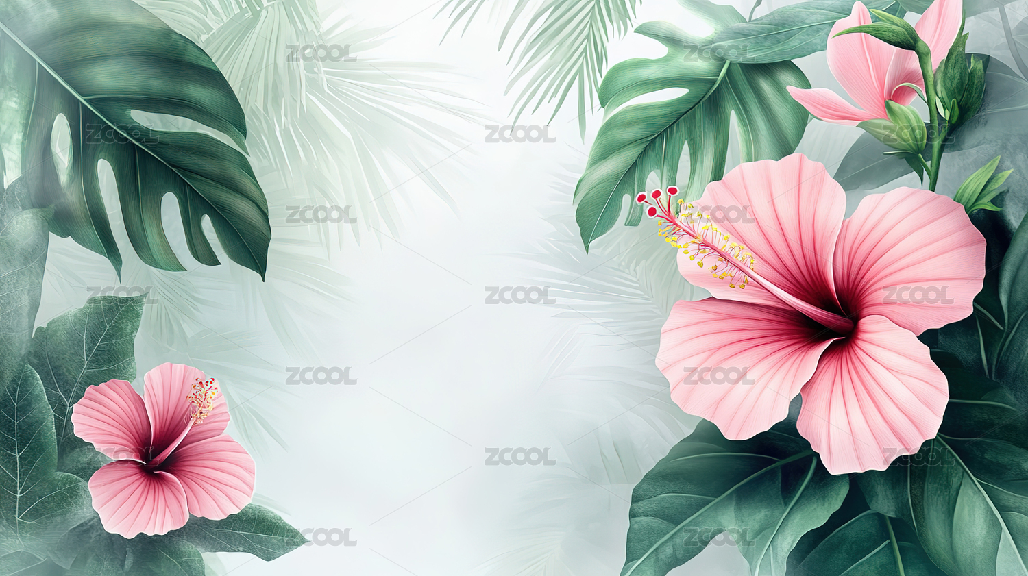 粉色花朵绿叶热带背景