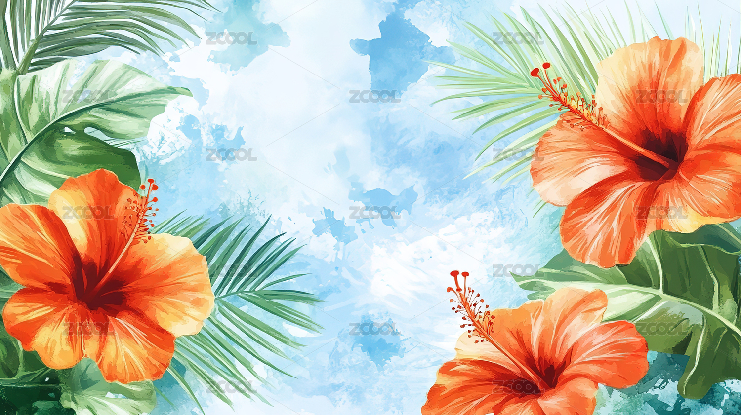 水彩热带花卉装饰背景