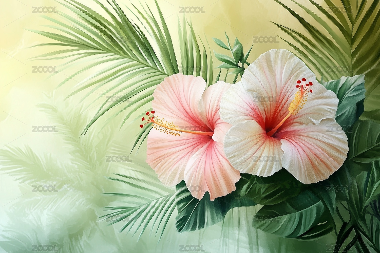 热带花卉背景与芙蓉花