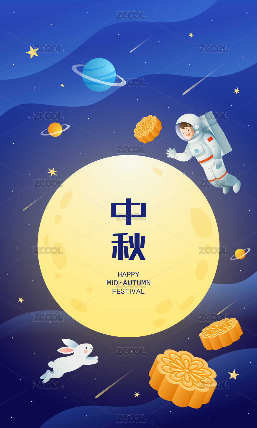 中秋节嫦娥和月亮玉兔桂花等竖版