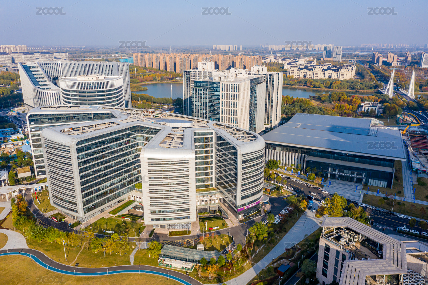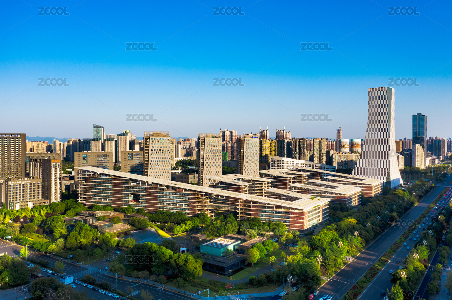 杭州滨江区新建城市商务写字楼园区建筑群航