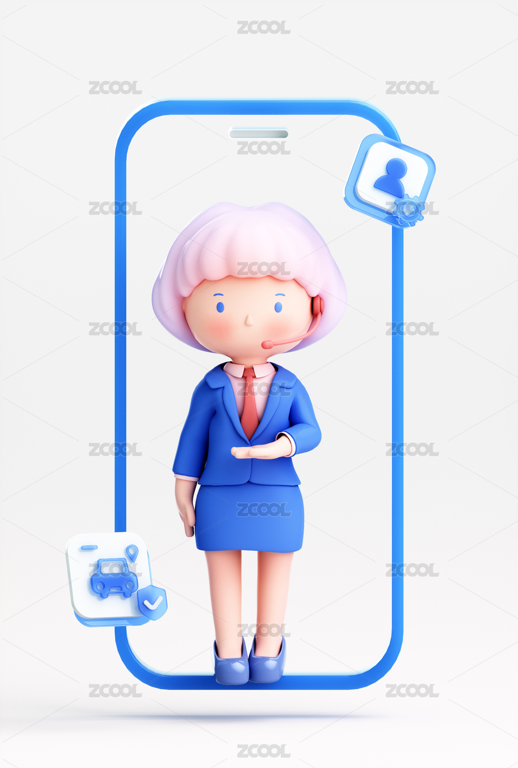 客服,3D,可爱,卡通,动画,元宇宙,人物,玩偶,西服,商务