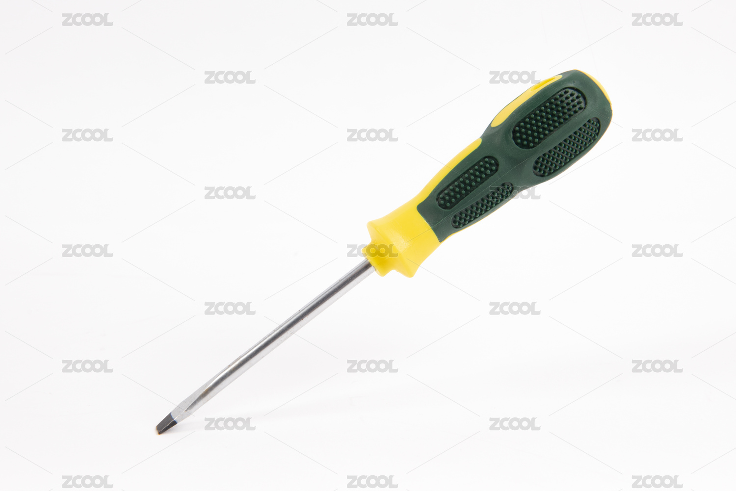 白色背景上一个亚洲人的手握着一把螺丝刀
