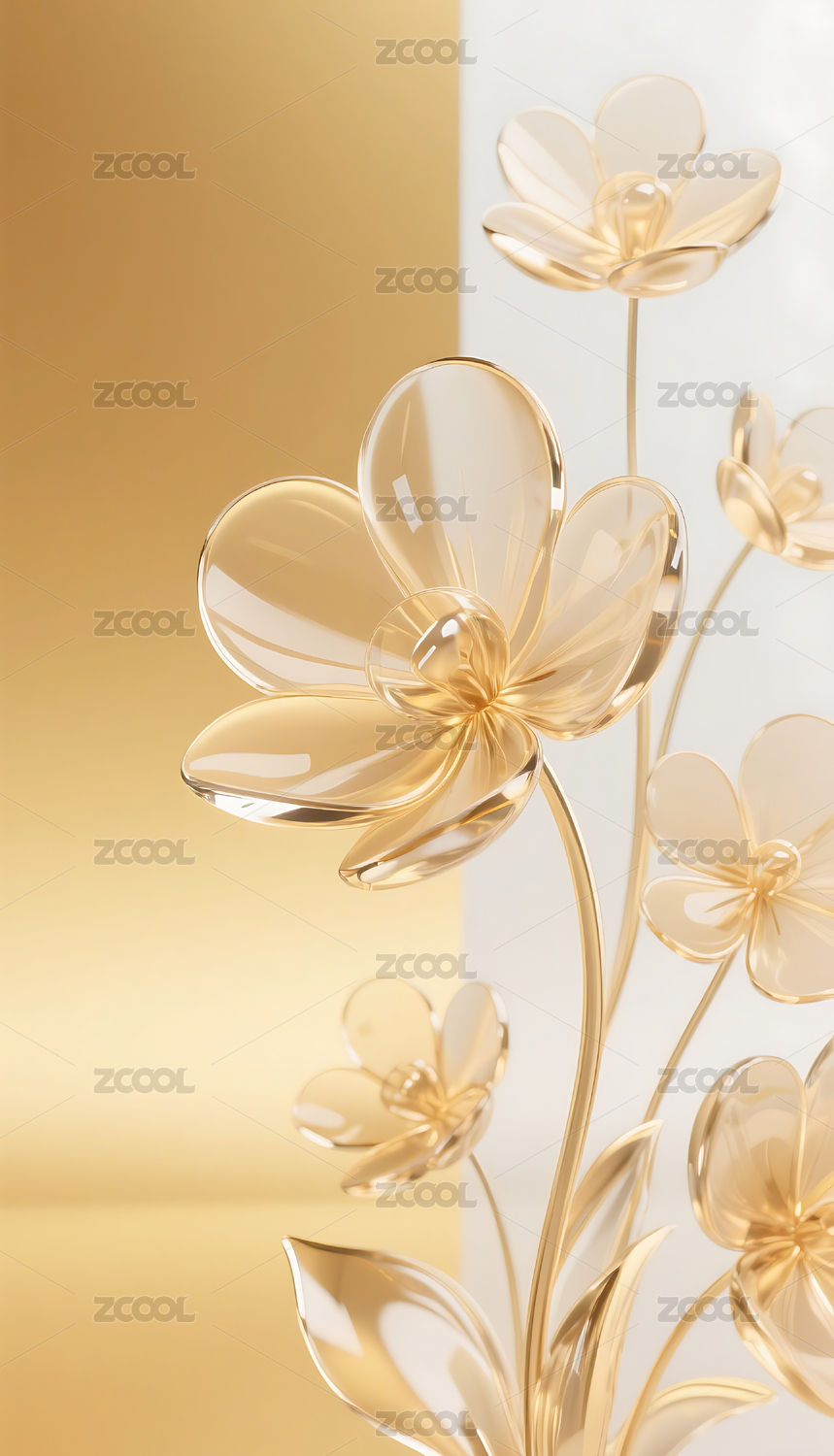 金色3D立体玻璃质感花朵背景