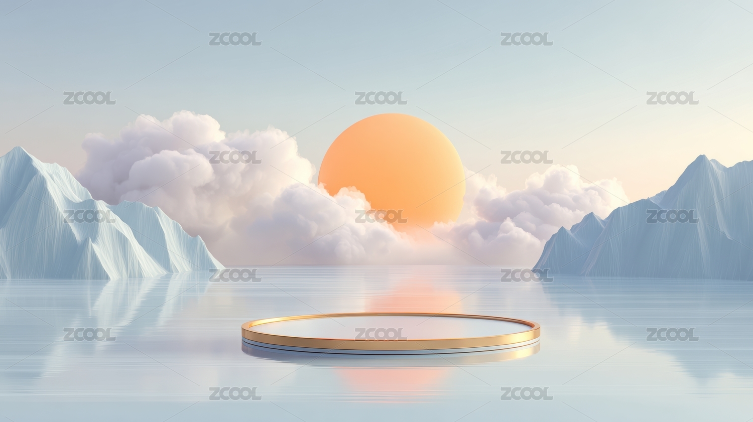 数码雪山海洋展台电商图形海报背景