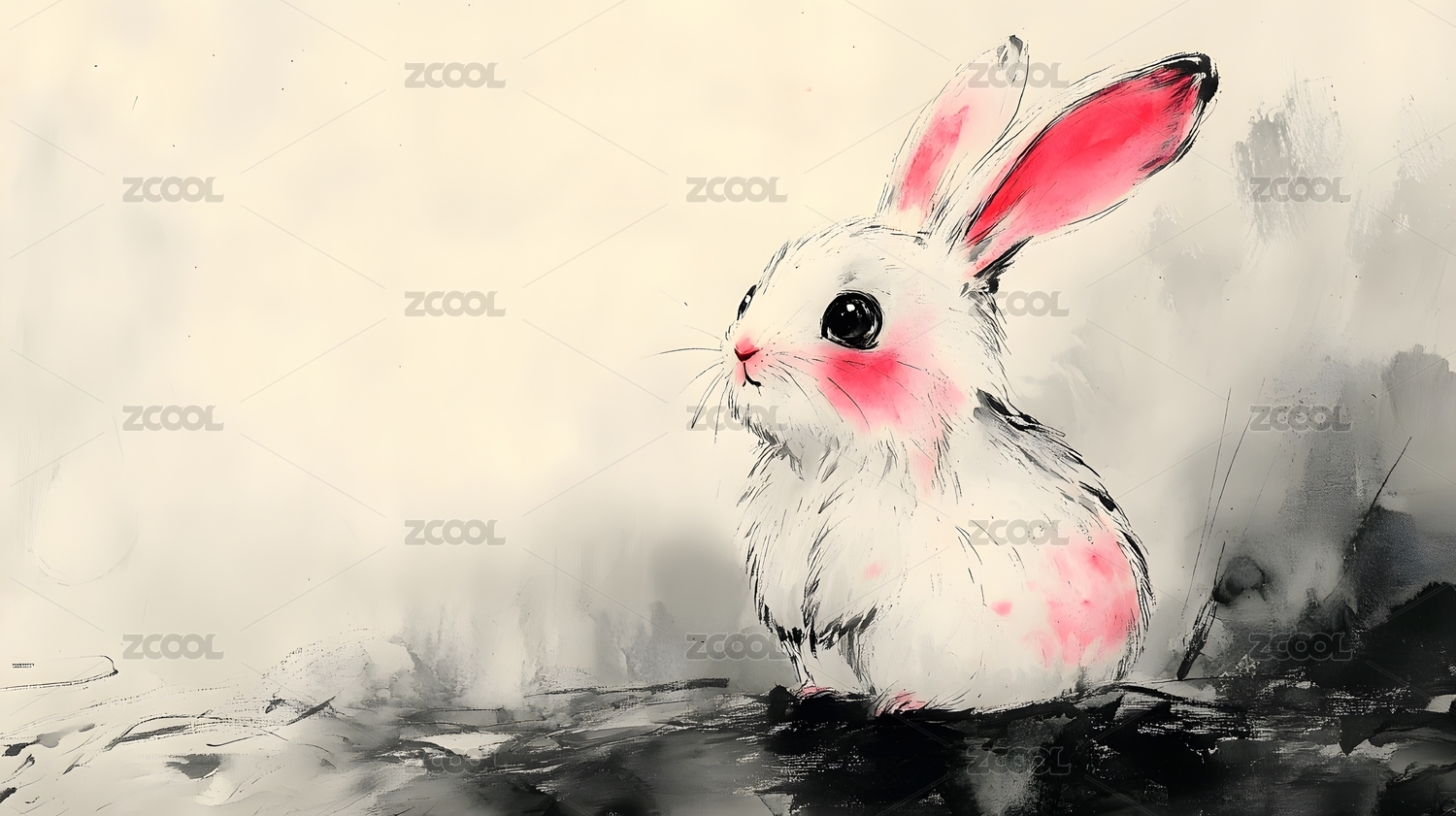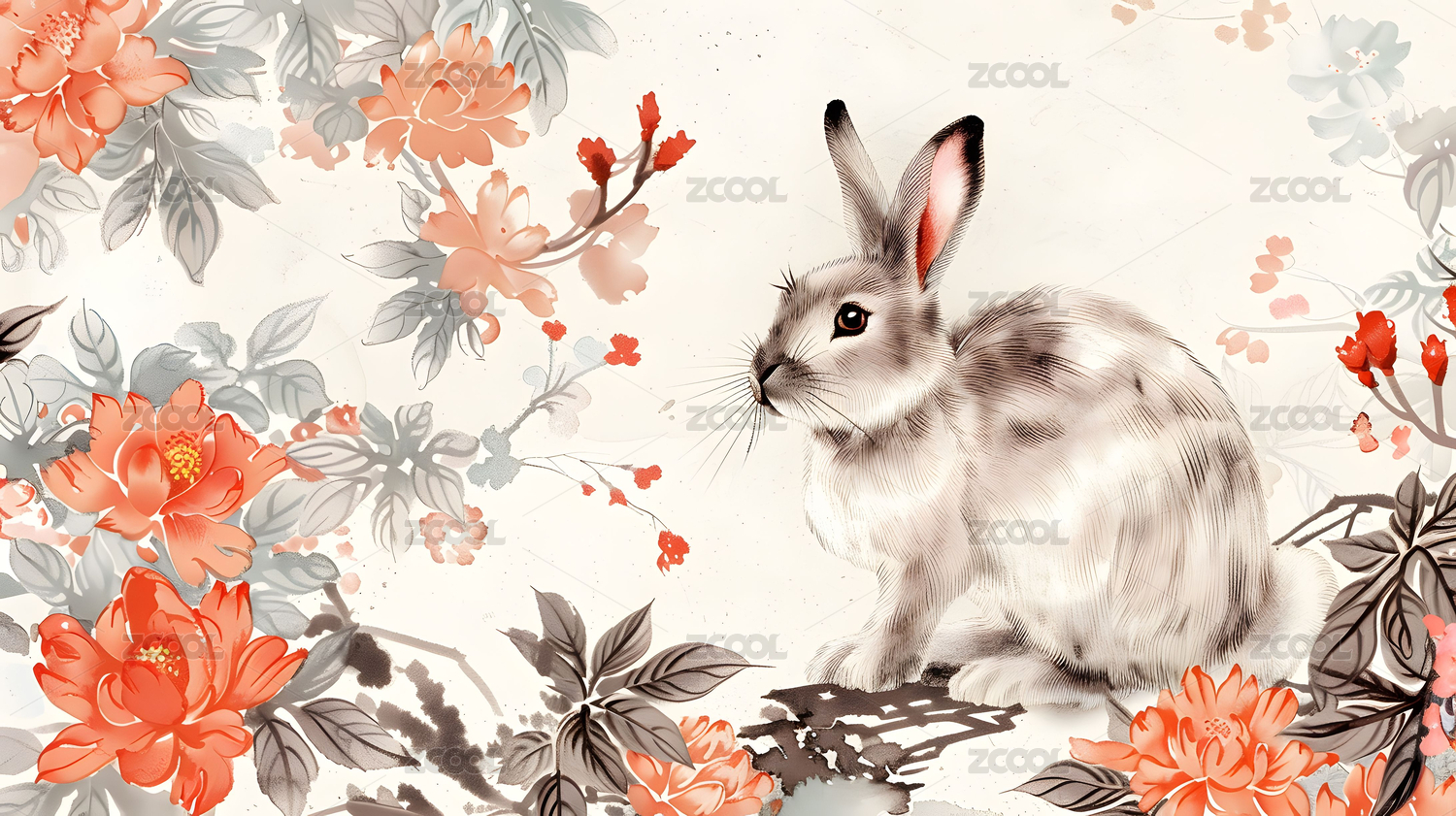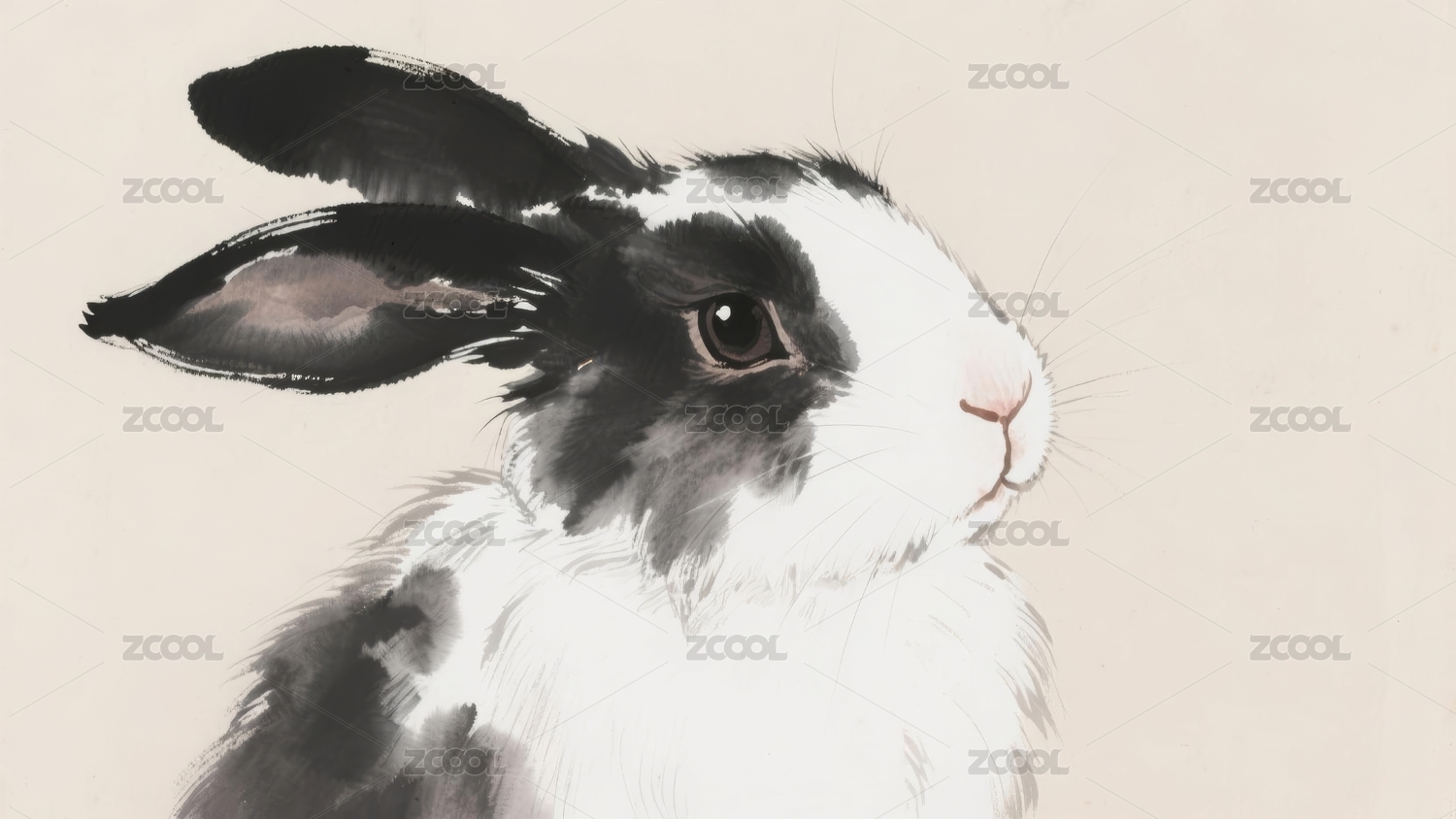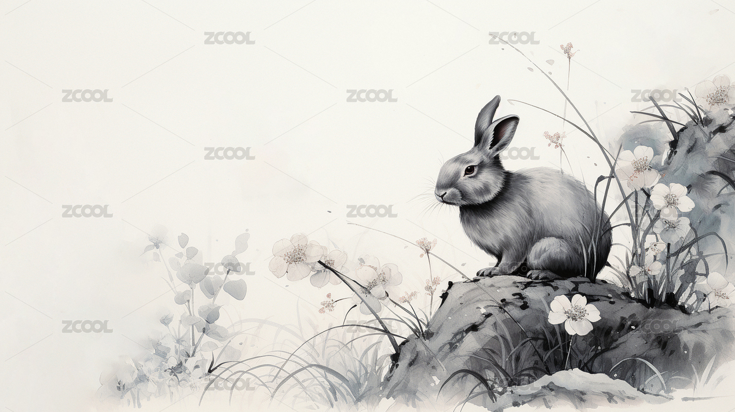 背景,素材,水墨,国风,古风,节日,祝福,动物,兔子,胡萝卜