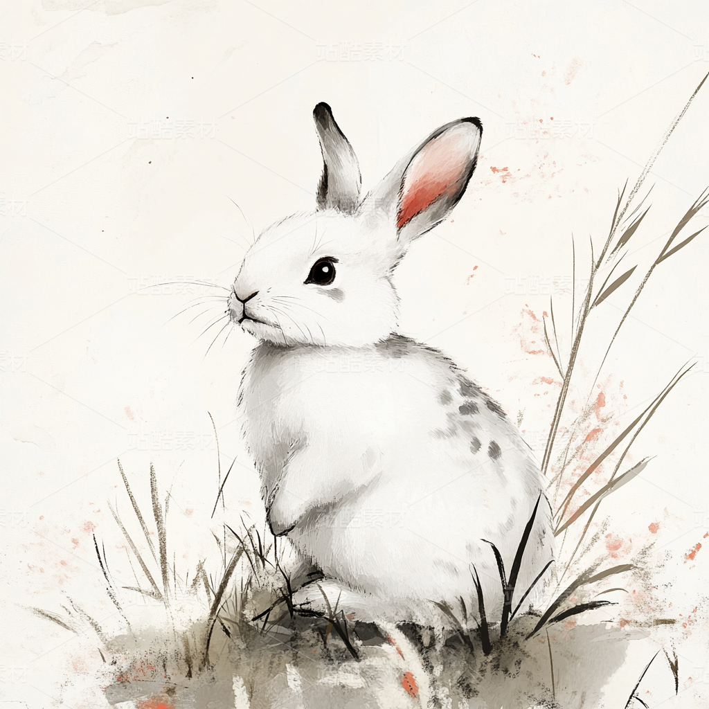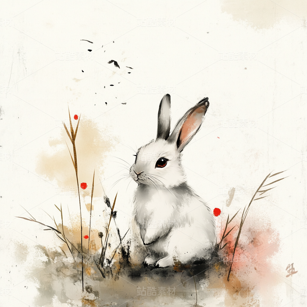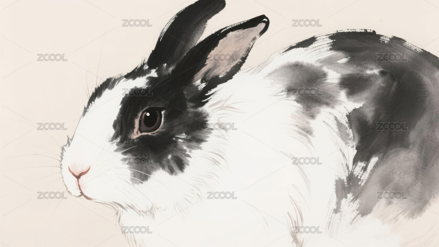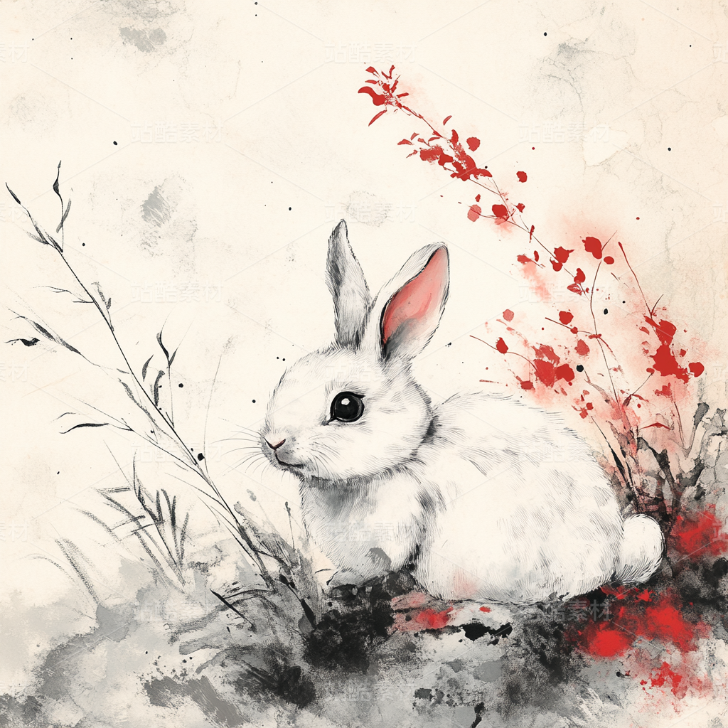 背景,素材,水墨,国风,古风,节日,祝福,动物,兔子,胡萝卜