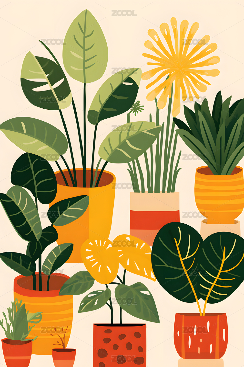 黄色,绿色,植物,图案,复古,插画,花卉,花朵,色彩,艺术
