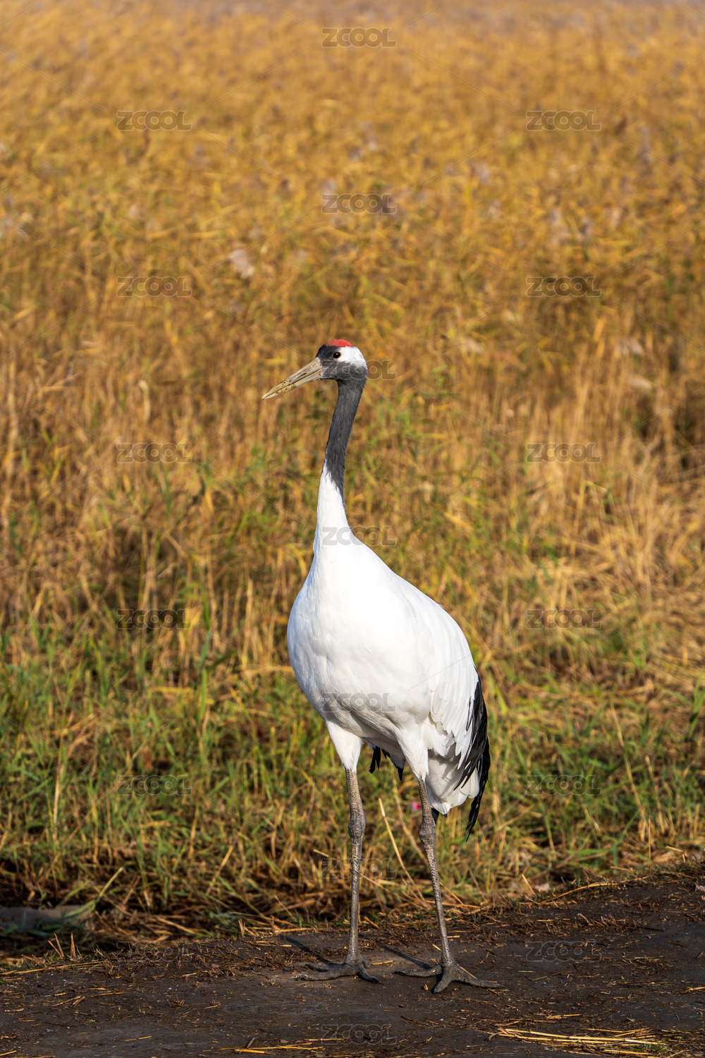 秋天扎龙自然保护区的丹顶鹤