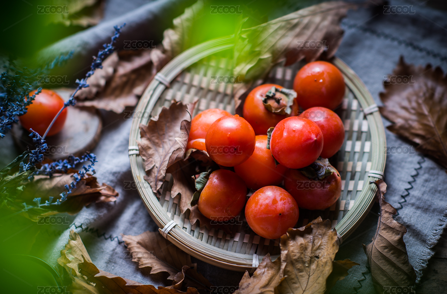 暗调森系桌上的四个柿子
