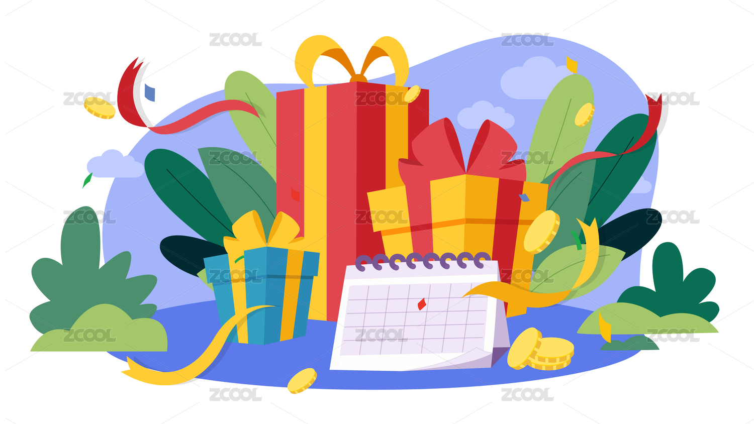 购物礼盒电商活动矢量插画