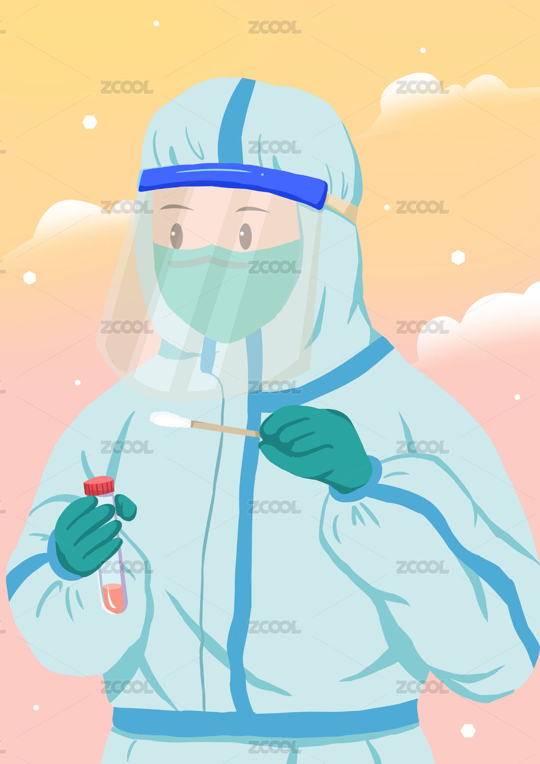 卡通手绘戴口罩医护人员手持化学瓶子插画
