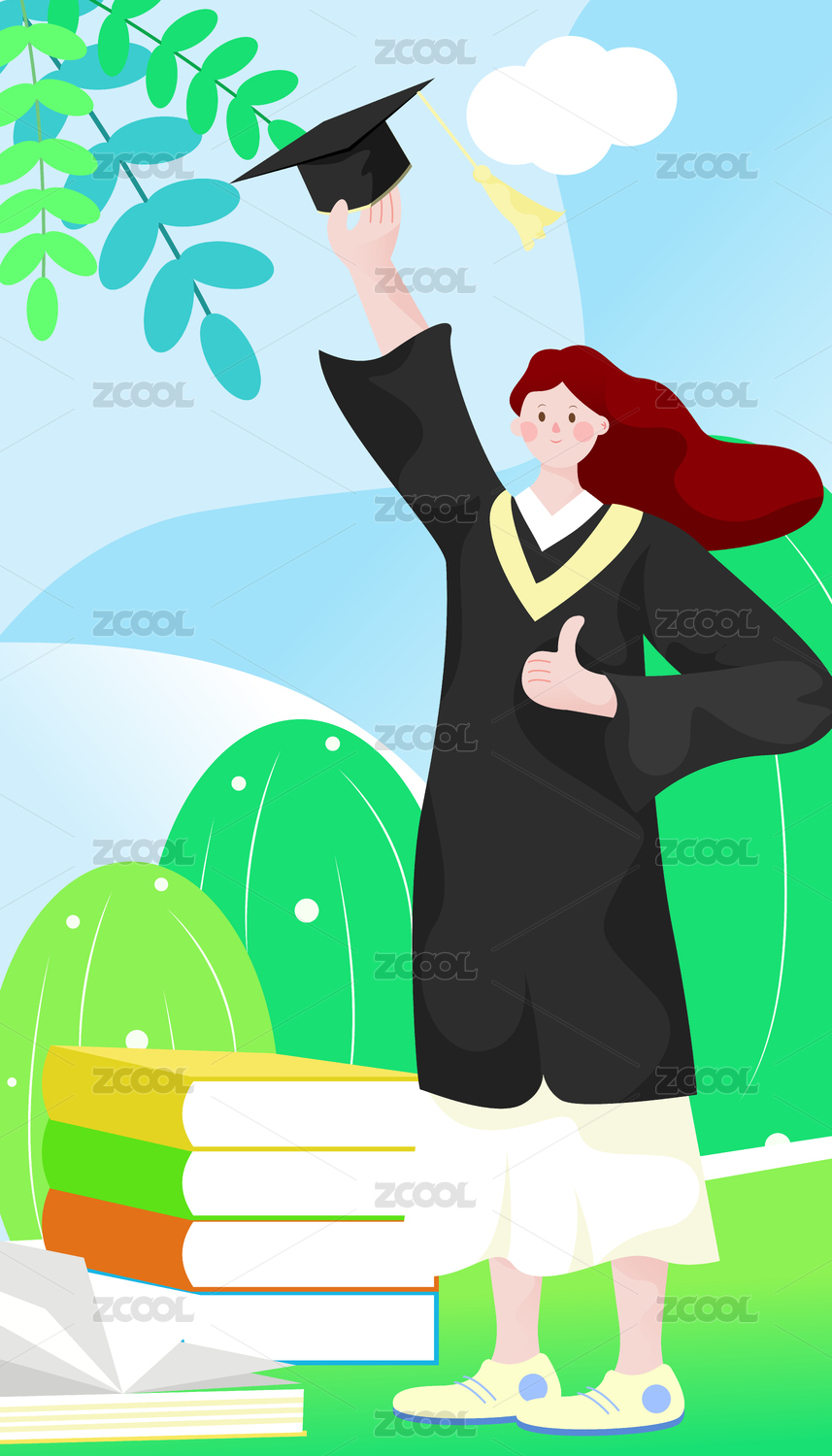 学生高考毕业开心跳跃考研冲刺学习教育插画