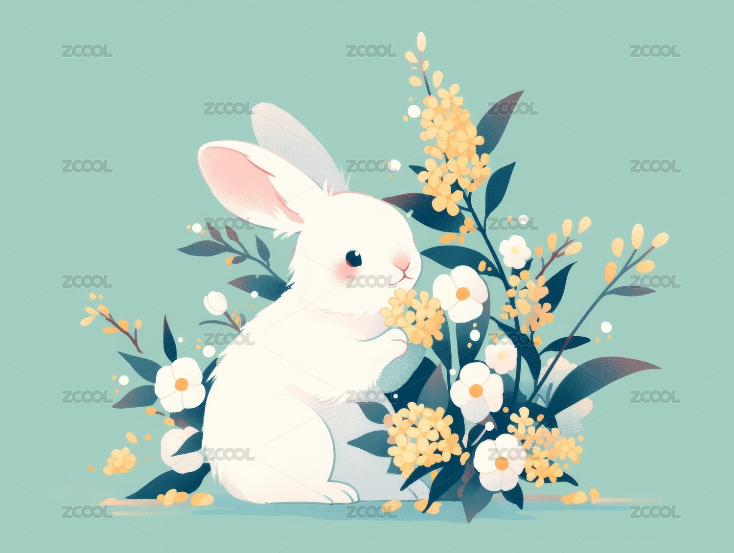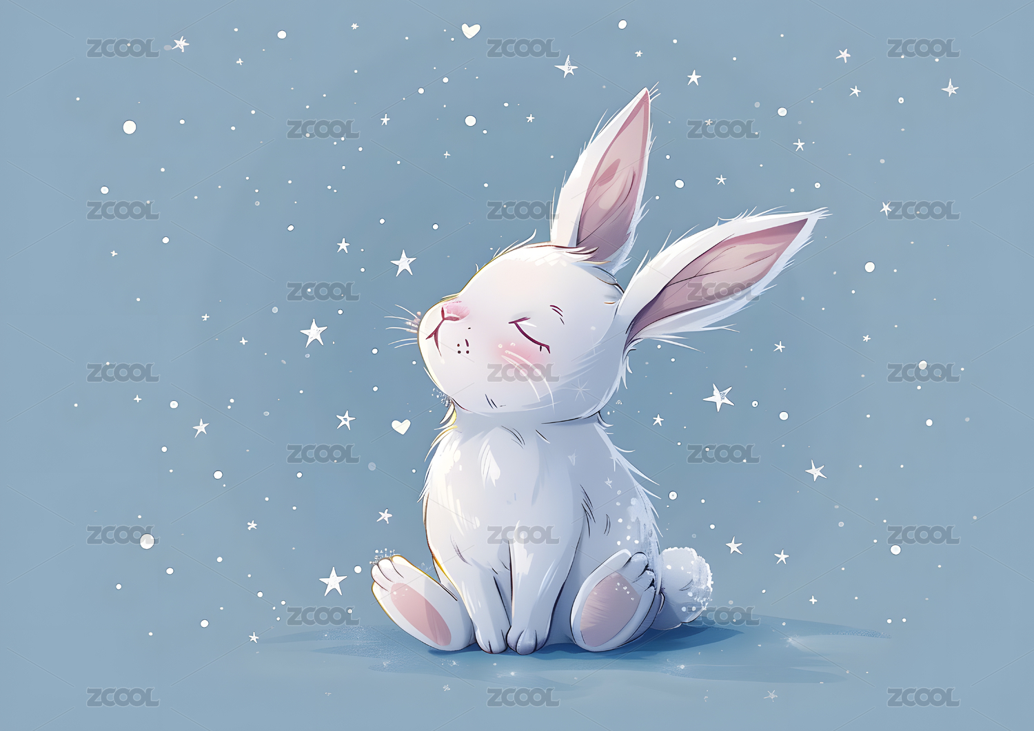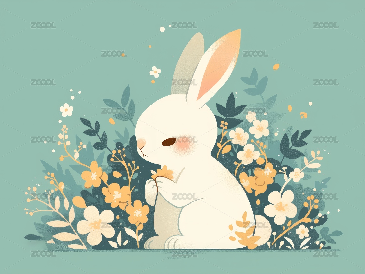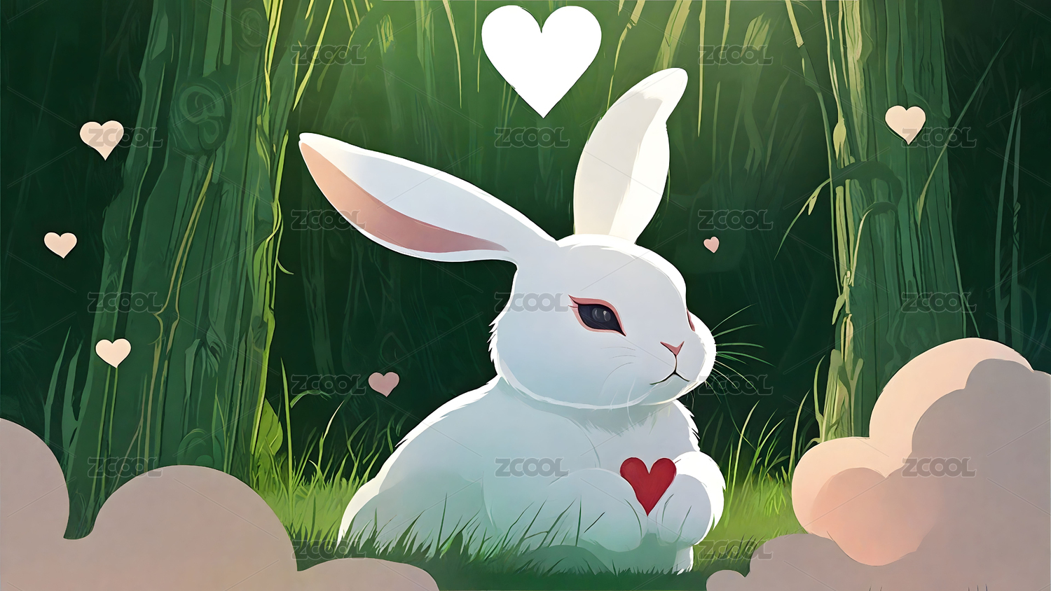 两只可爱的卡通兔子在草地上动物插画壁纸