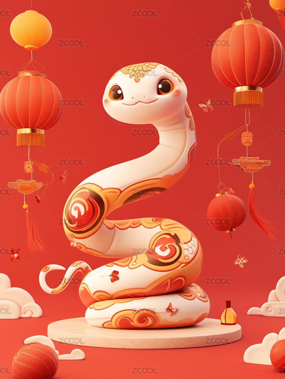 动物,蛇,新年,春节,蛇年,3D,生肖,神兽,神话,红色