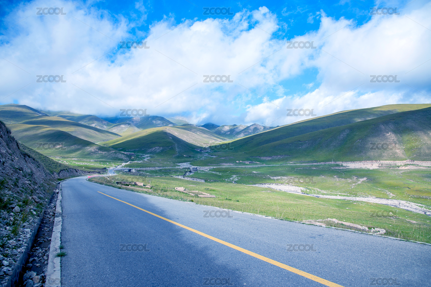 中国四川甘孜道孚夏季龙灯大草原柏油公路