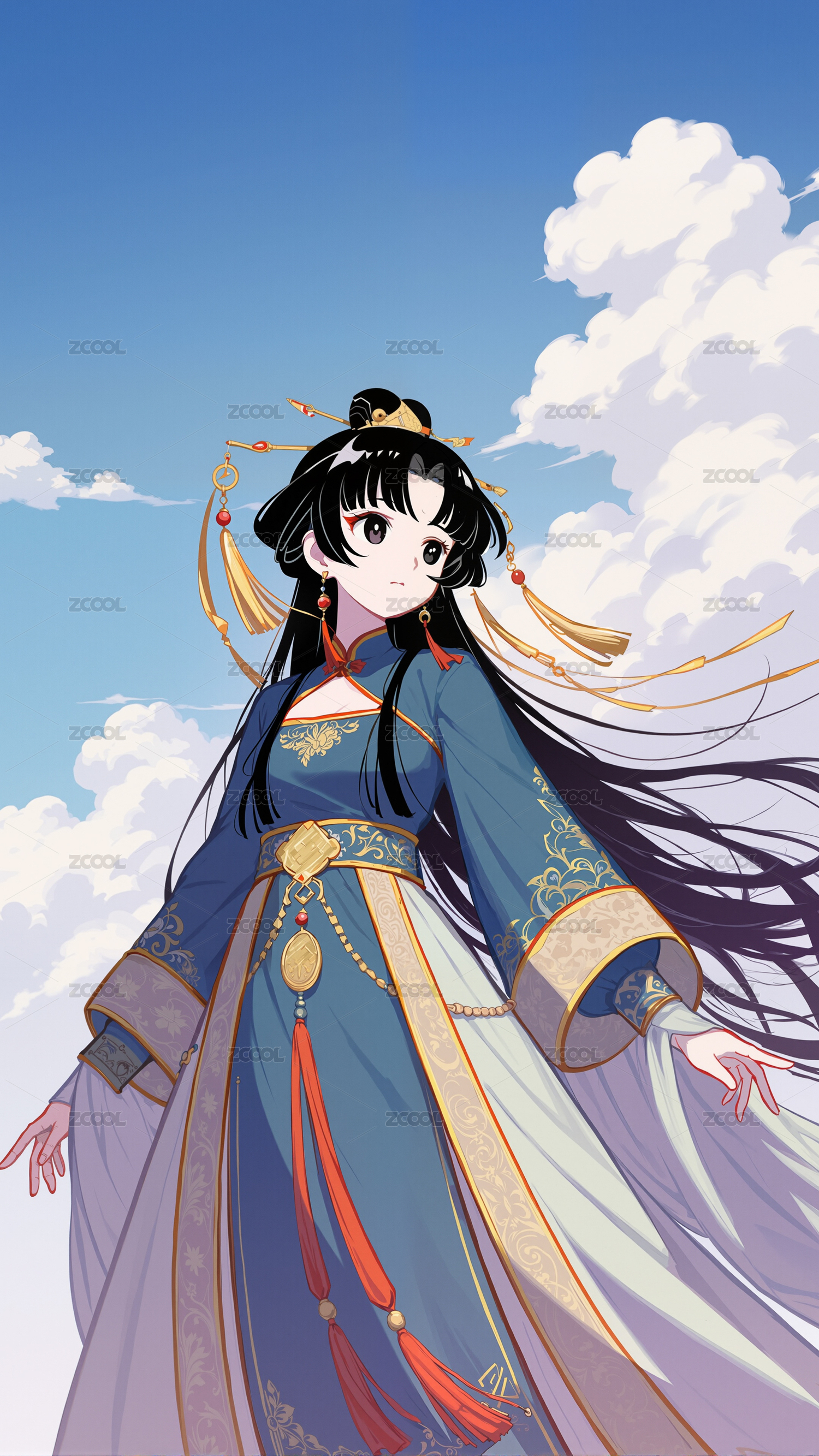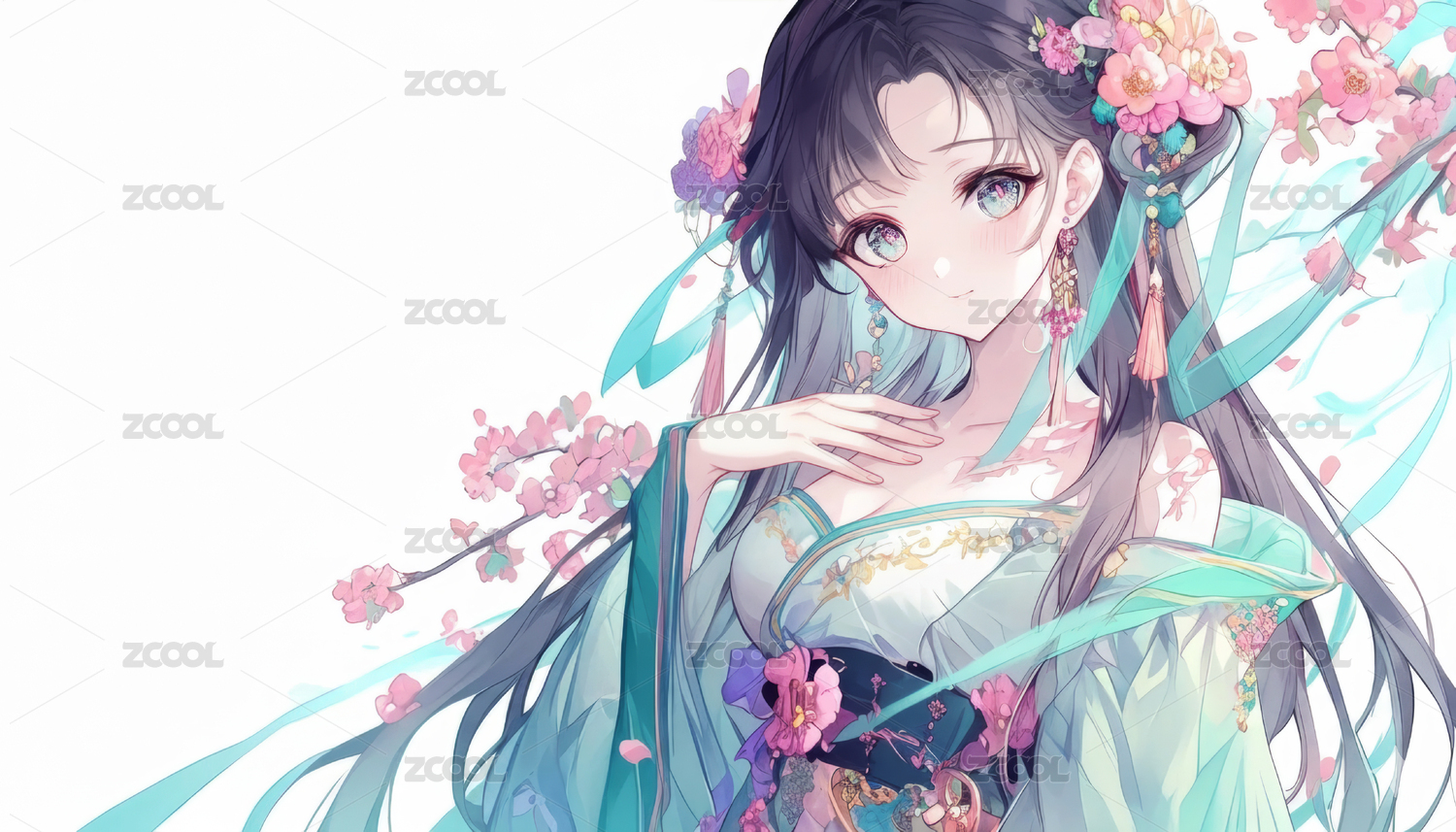 拿着书穿着绿色裙子的马尾辫少女,动漫人物