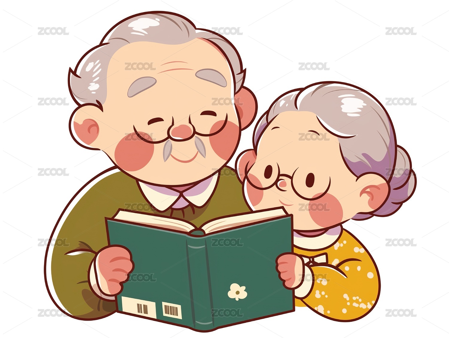 手绘白底两位健健康康的老人