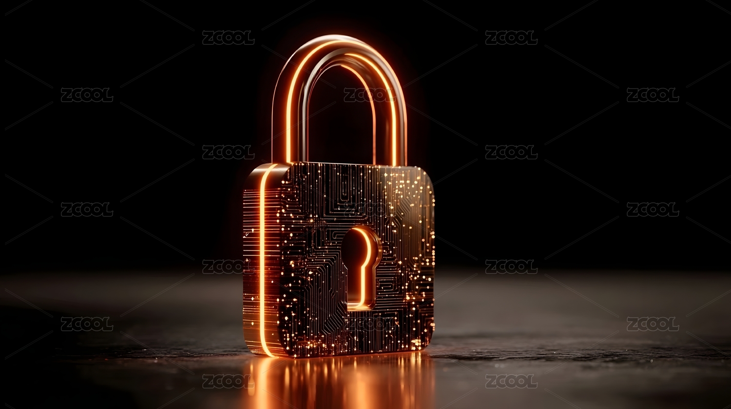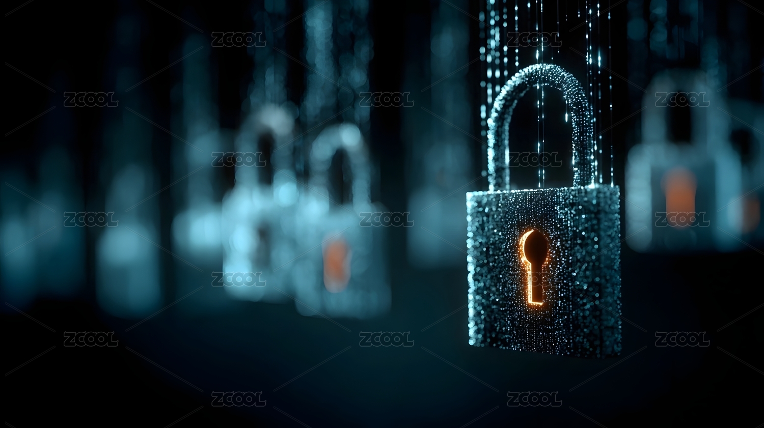 黑色背景下蓝色透明锁渐渐消失的数字合成图
