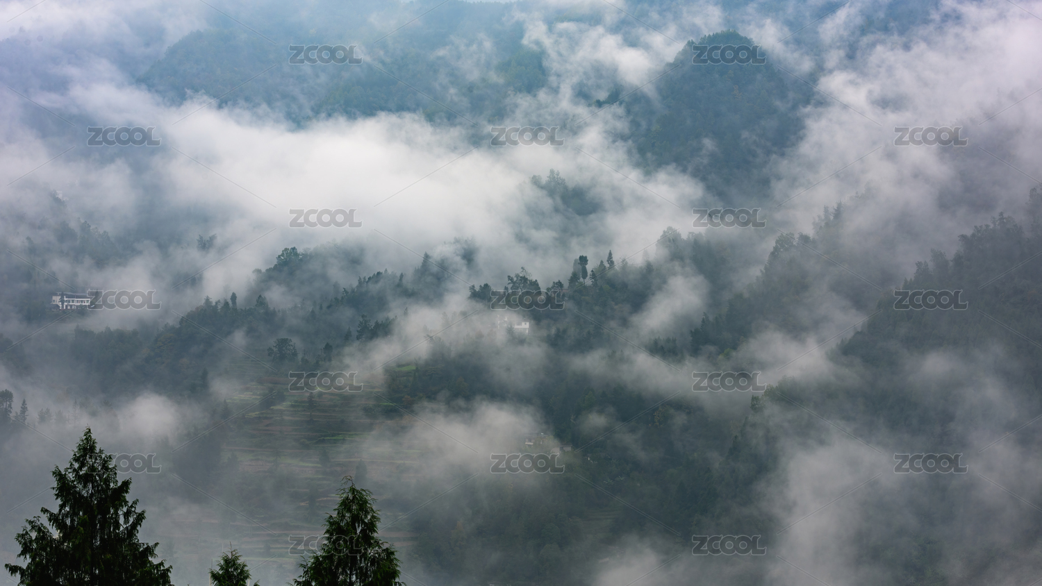 贵州省黔东南黎平县堂安梯田日出水墨云雾