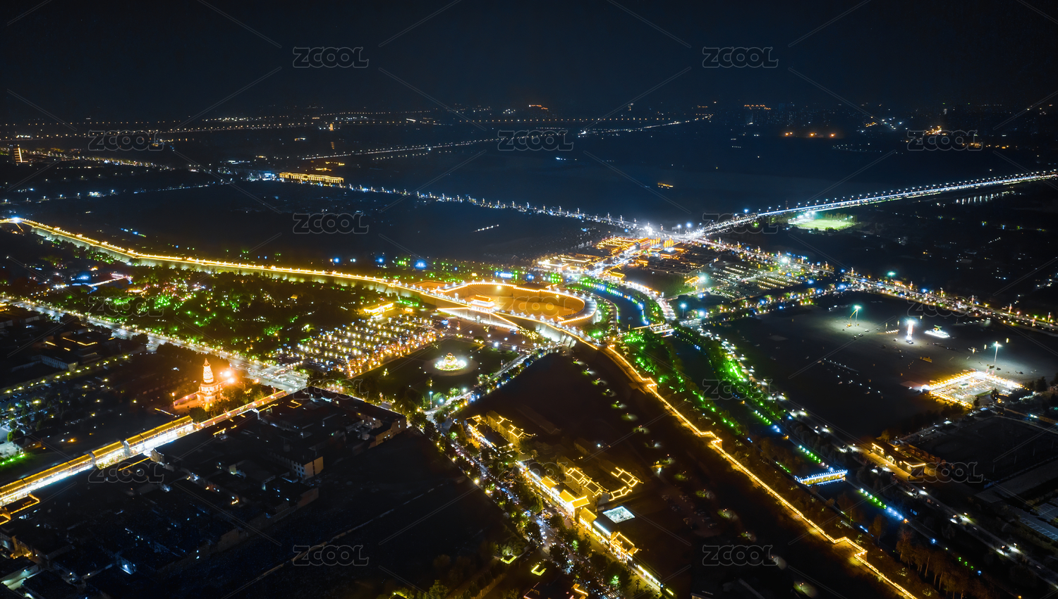 绍兴上虞航拍城市夜景