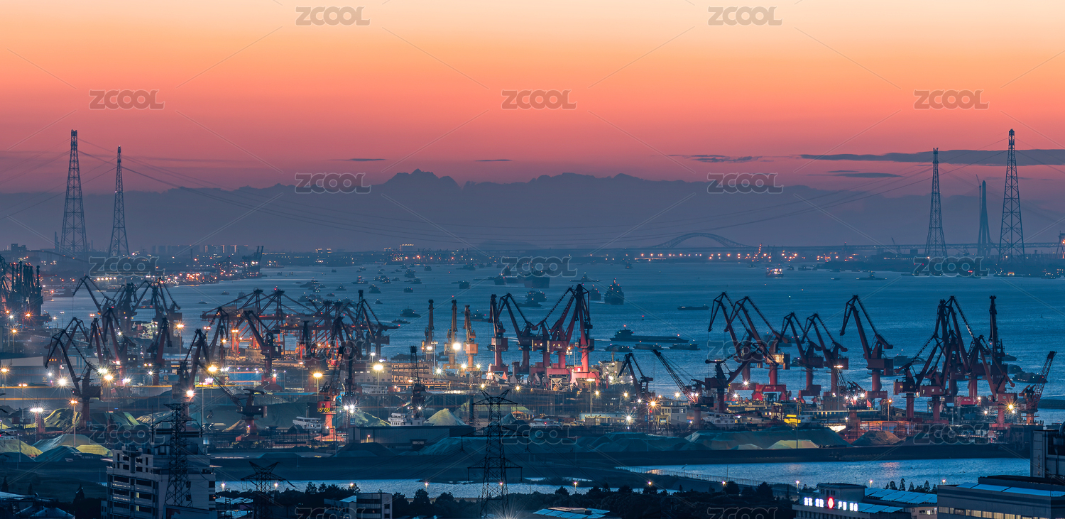 深圳盐田港繁忙港口货物集装箱夜景蓝调航拍