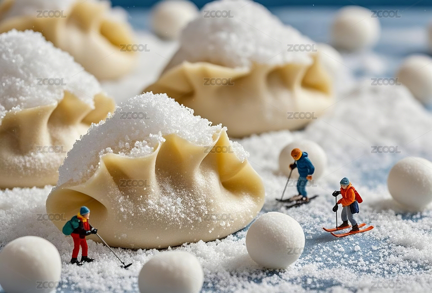 迷你微缩世界一群小人偶在雪糕世界滑雪