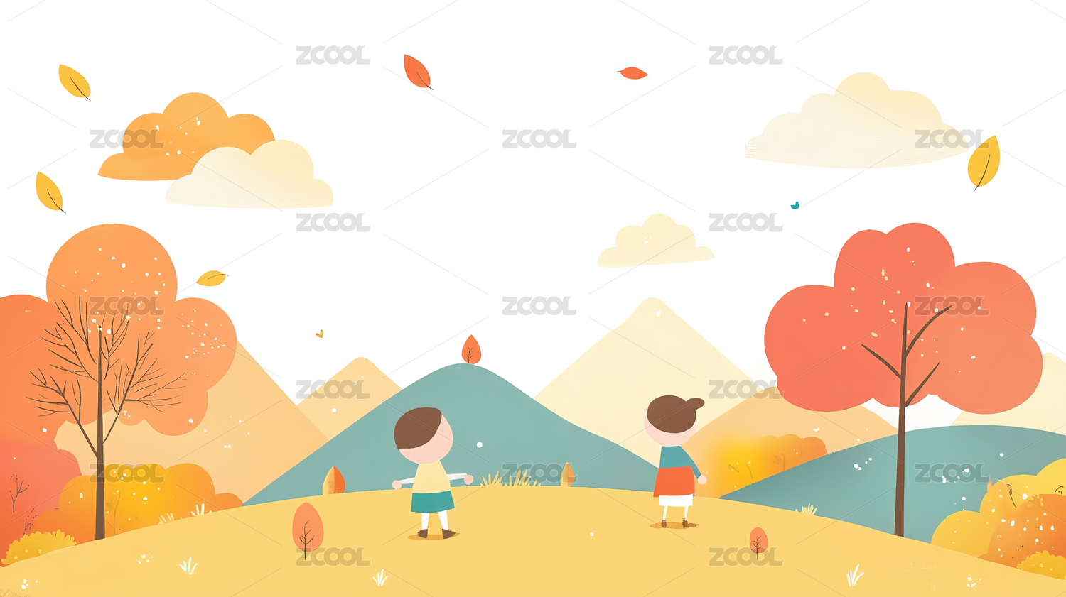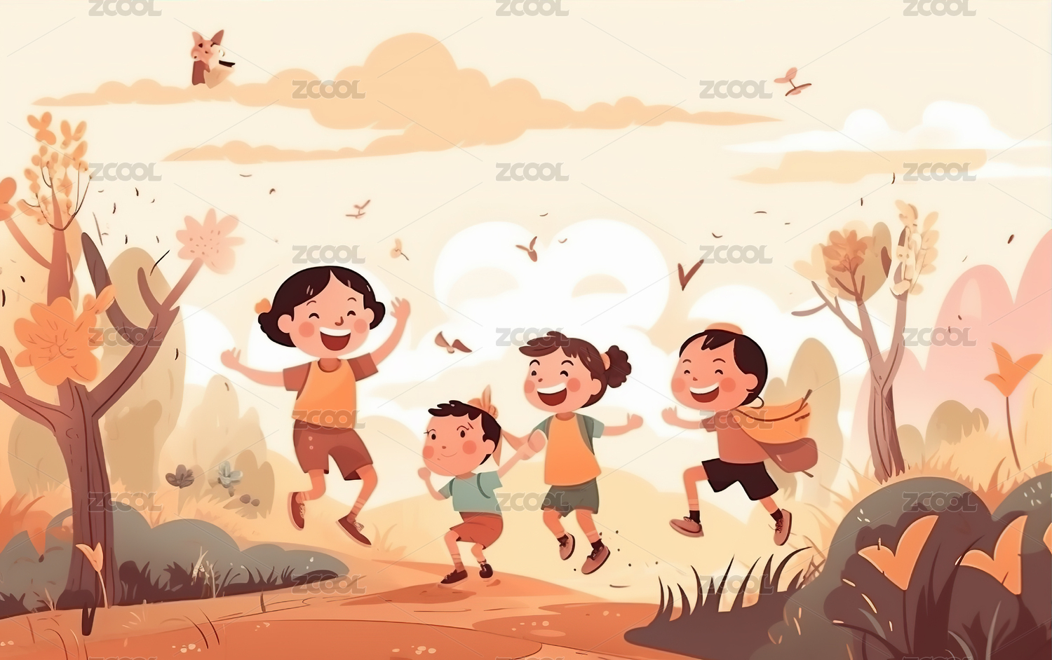 自然,秋季,风景,卡通,儿童,插画,玩耍,友谊,快乐,活动