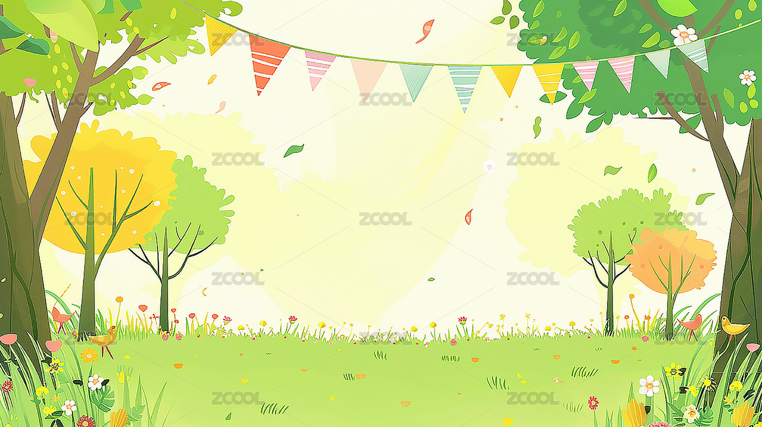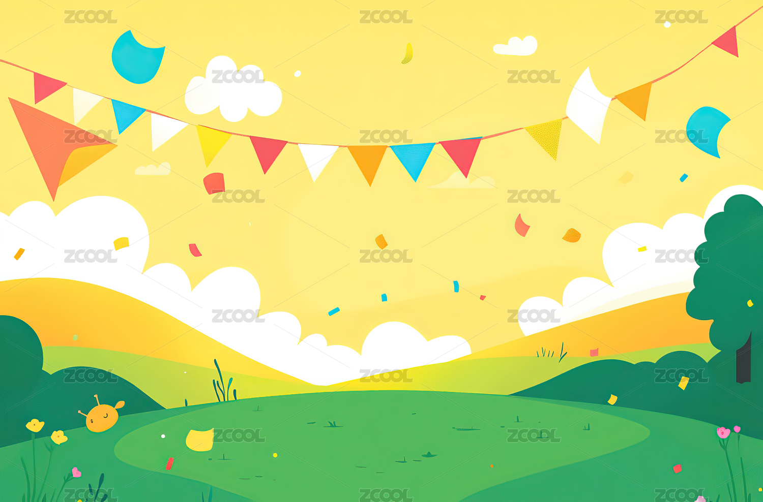 可爱卡通六一儿童节彩旗玩耍场地背景