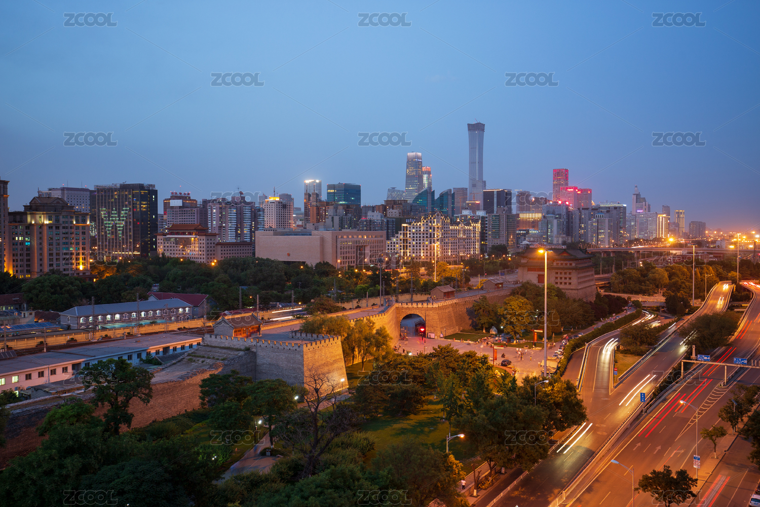 北京城墙北京CBD夜景城市风光