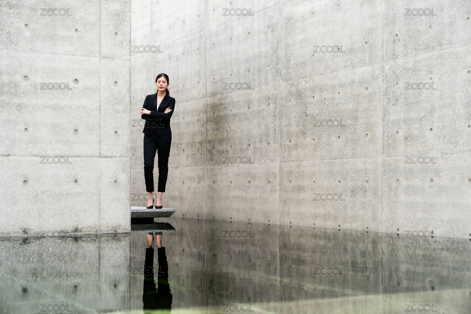 亚洲严重实业家全长纵向代表与室外公共空间的信心张贴。