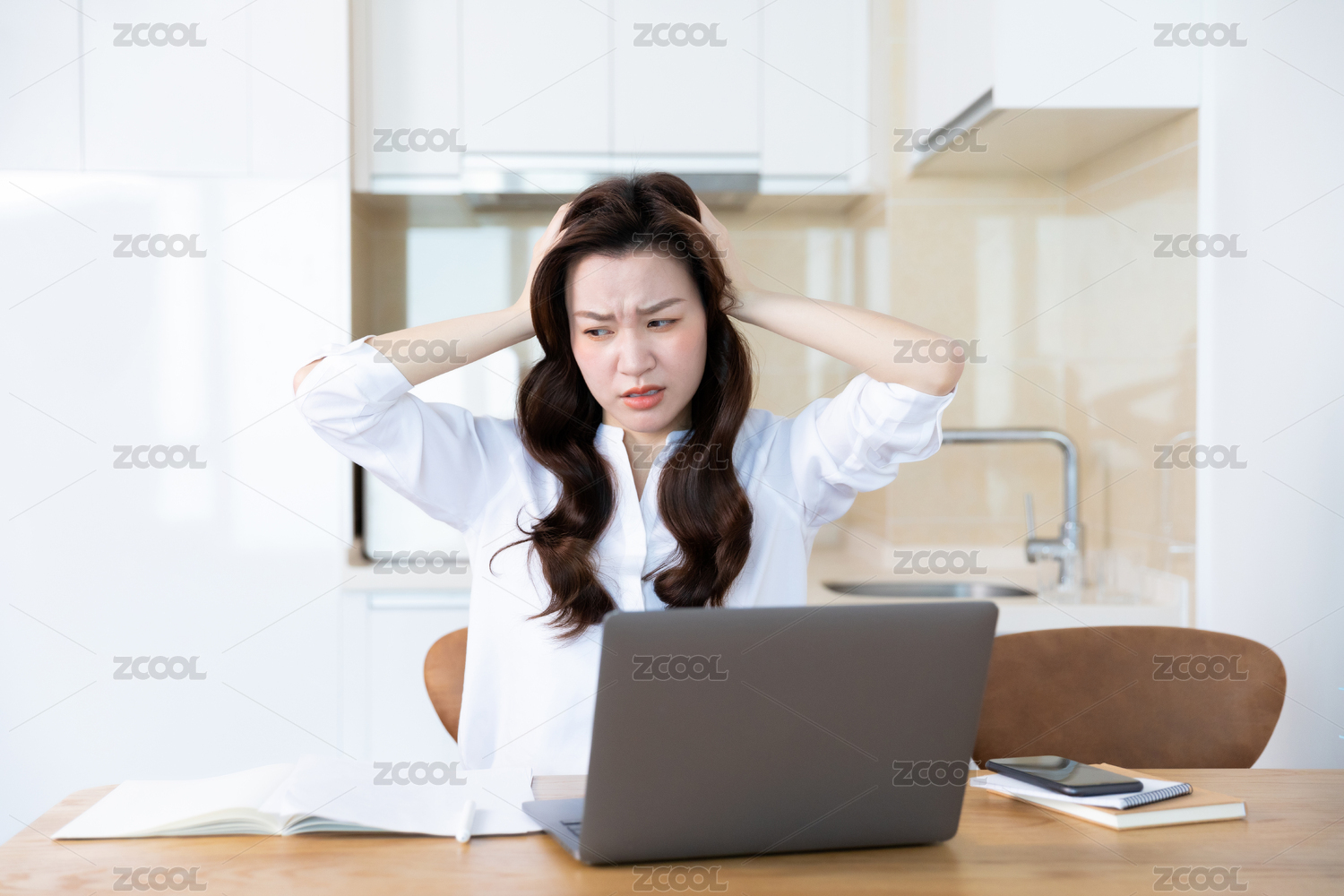 年轻的亚洲女商人在办公室不舒服过度劳累