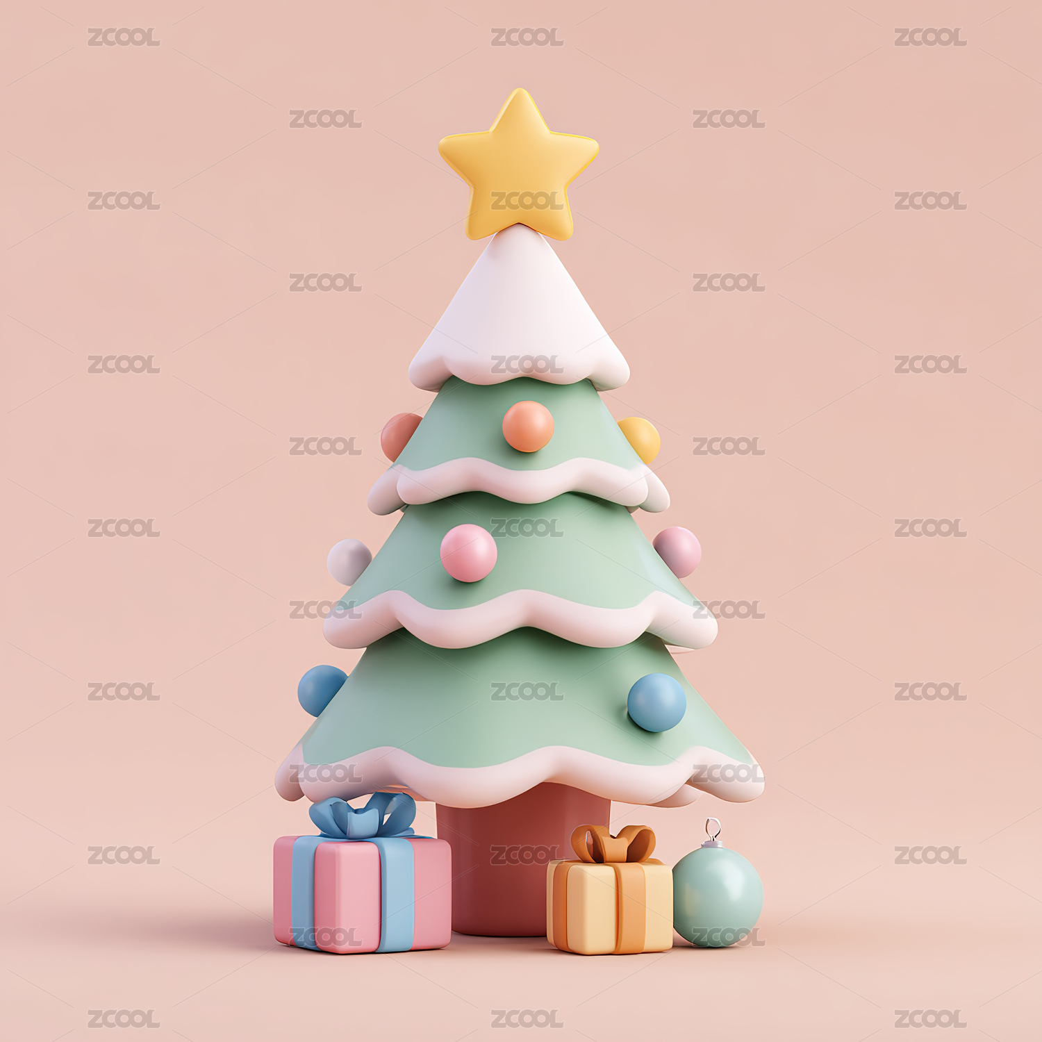 卡通风格圣诞树与礼物