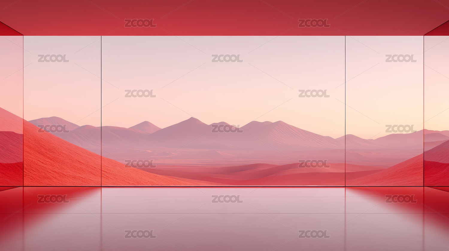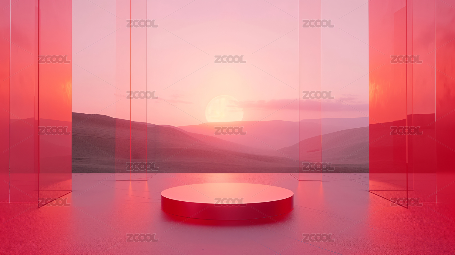 梦幻粉色山峦日落景观抽象艺术