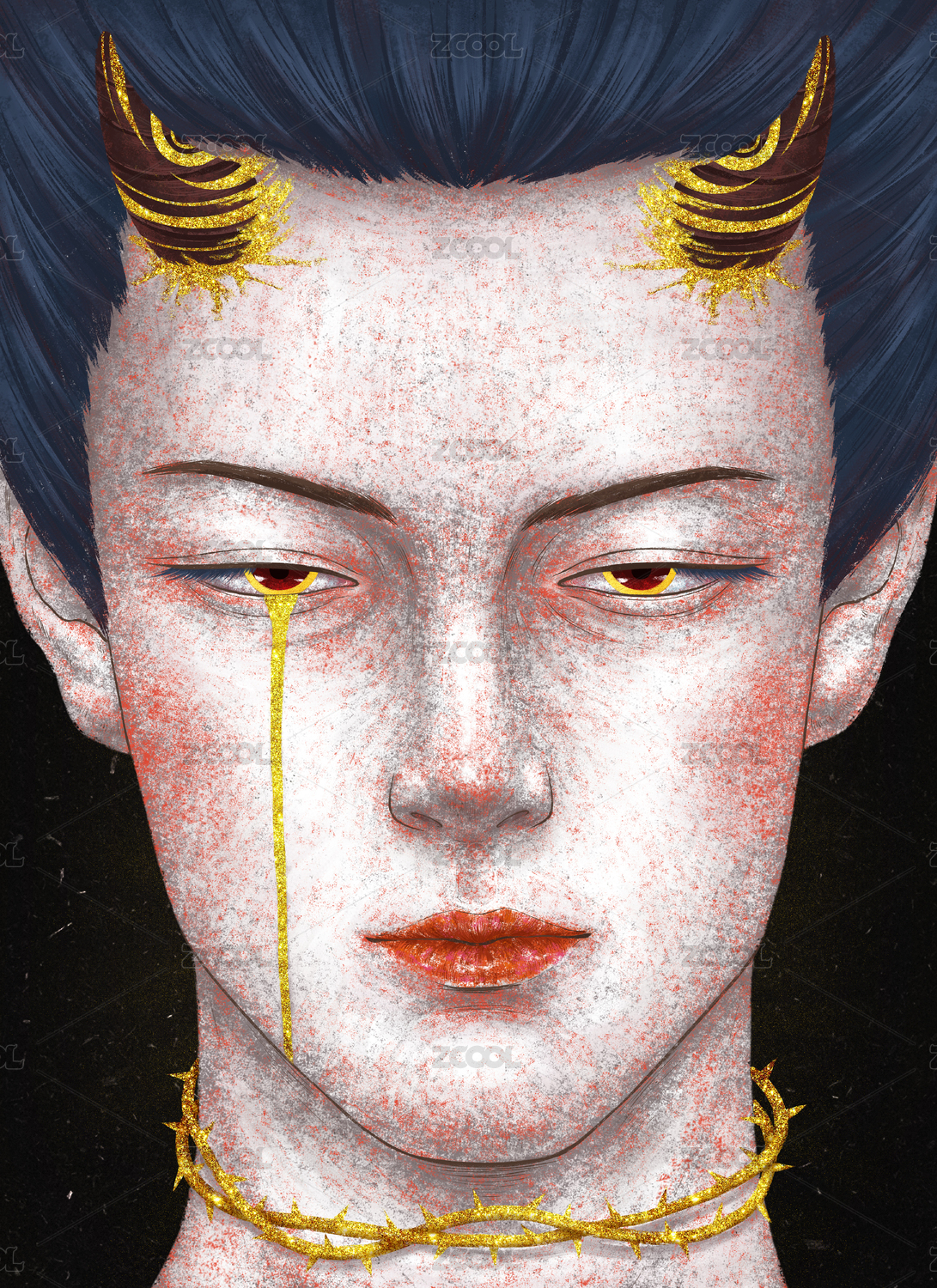 插画,人像插画,复古,艺术,人物插画,男,金粉,金箔,金色,忧郁