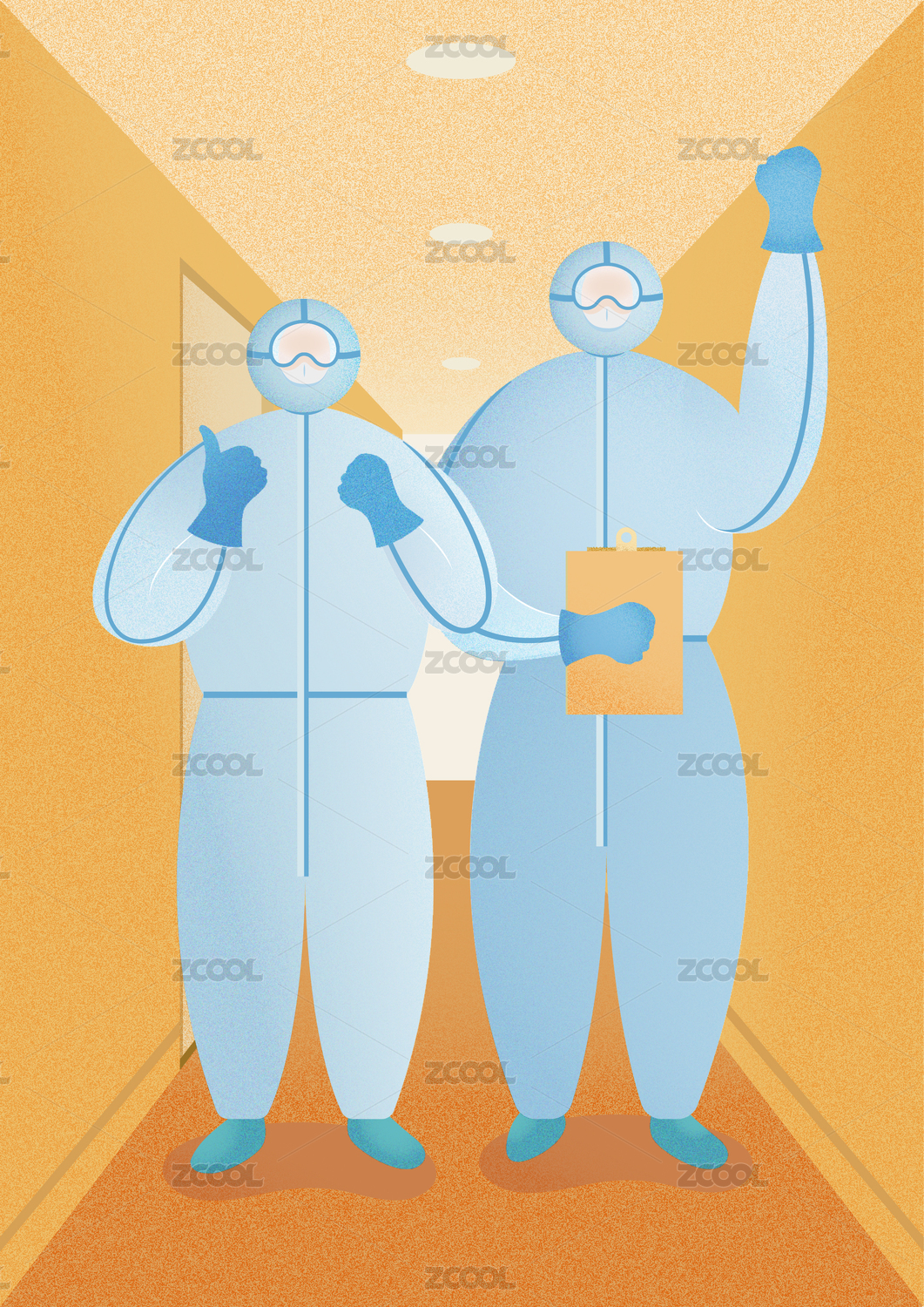医院里全副武装的医生抗战疫情插画