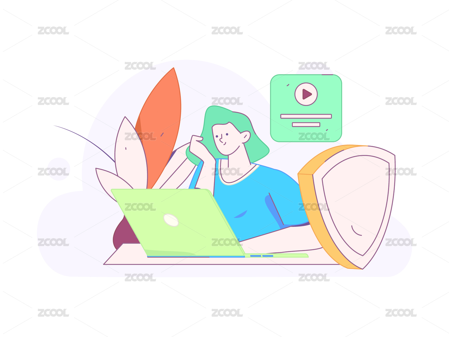 一位女孩在电脑里提示矢量图