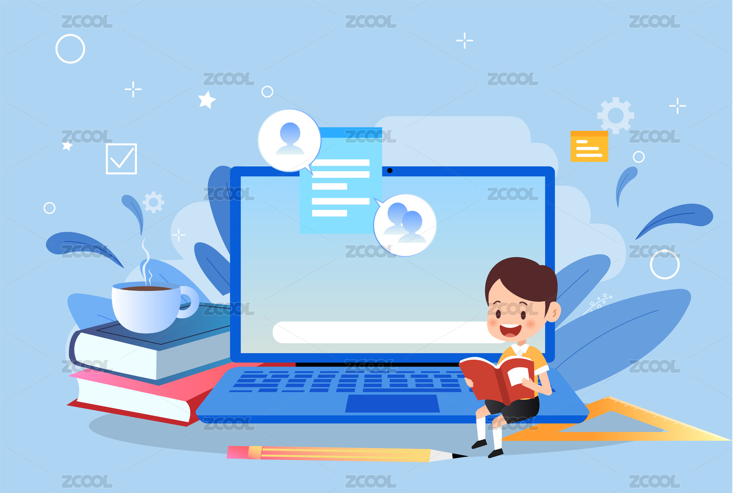 卡通老师网上教学插画