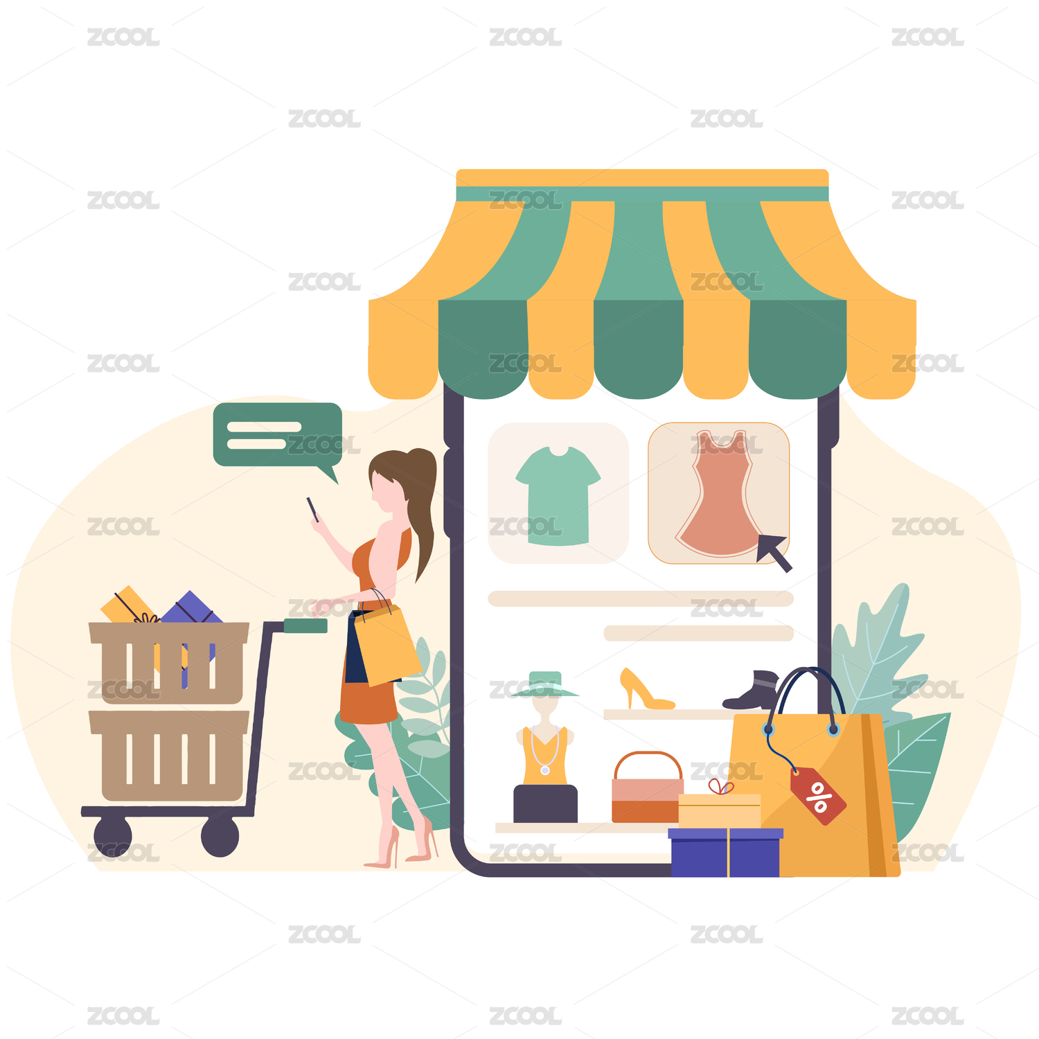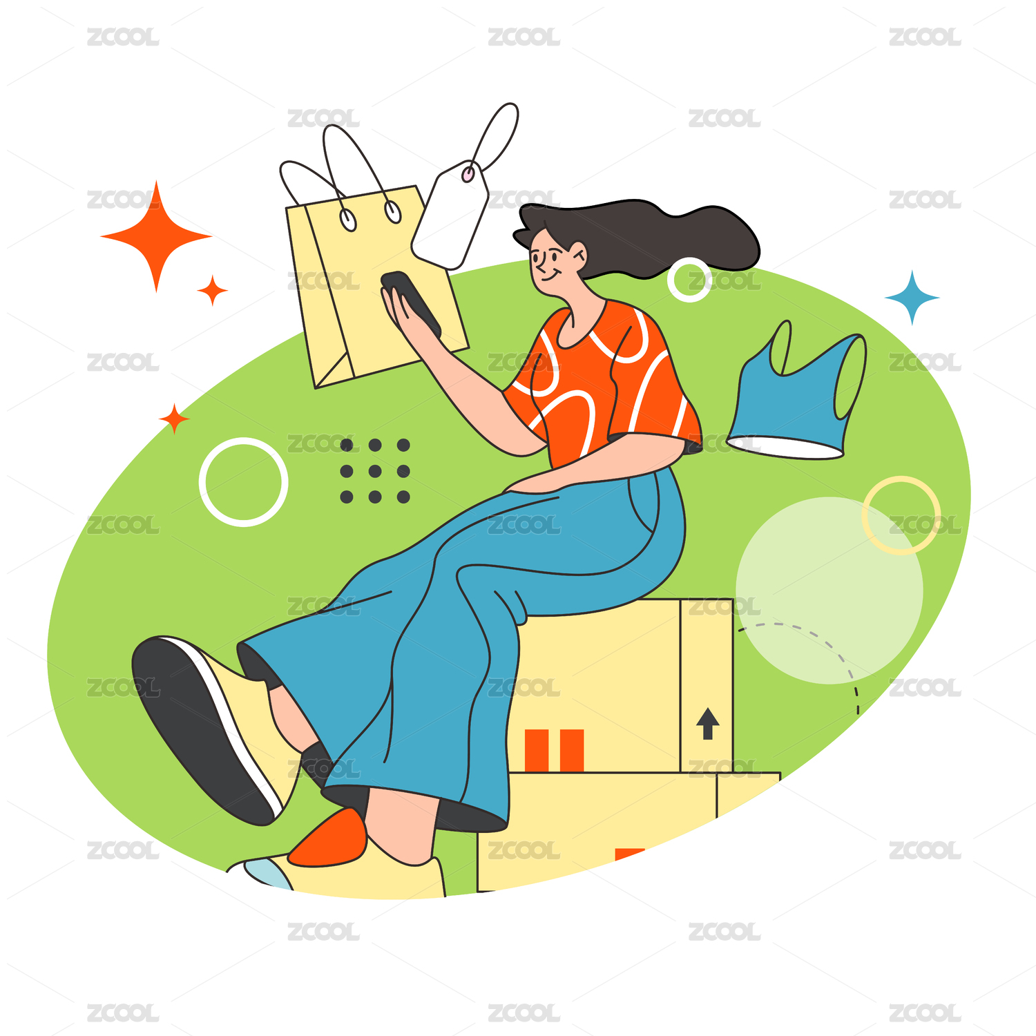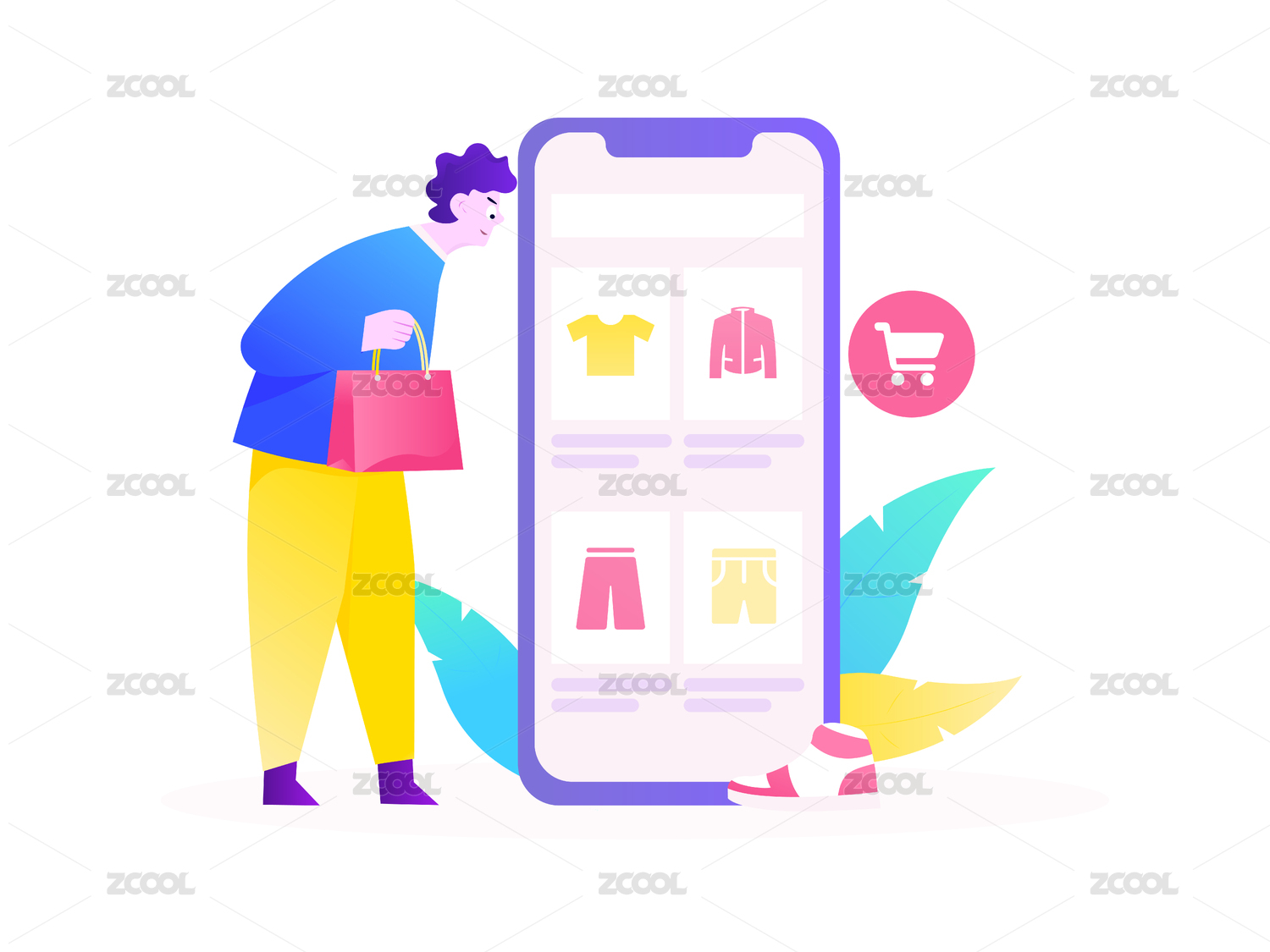 网购电商的男子,扁平矢量人物场景创意概念插画