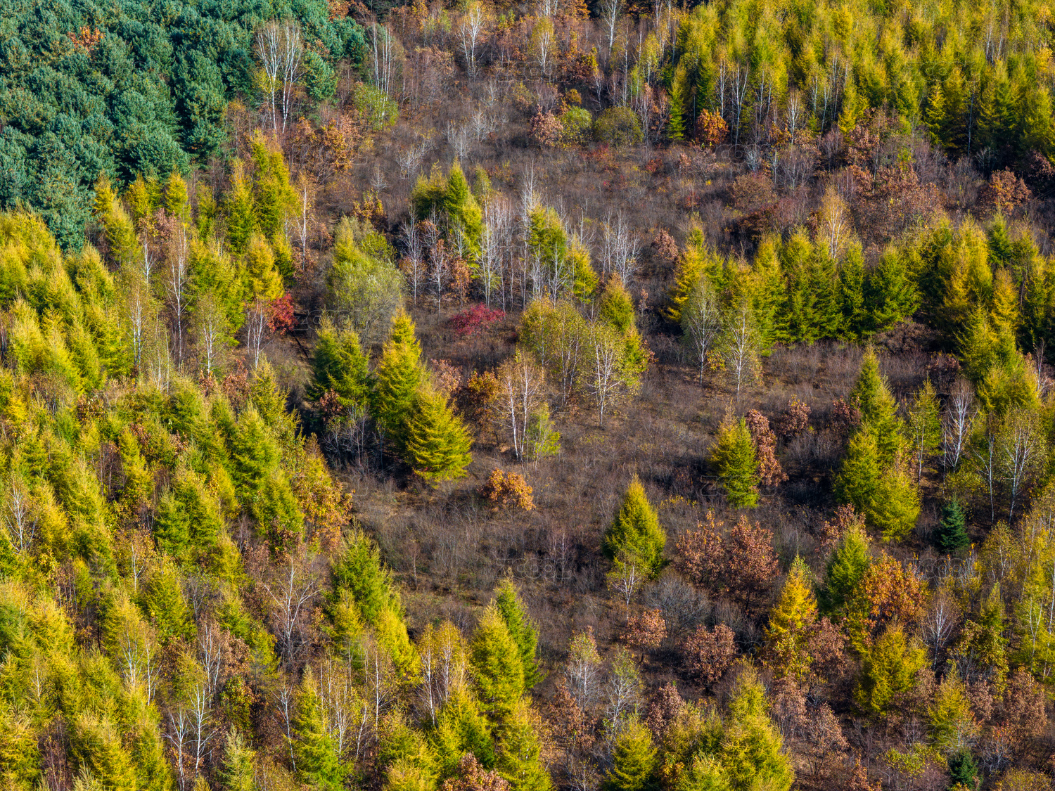 建始高岩子林场秋冬季清晨云雾缭绕五彩斑斓