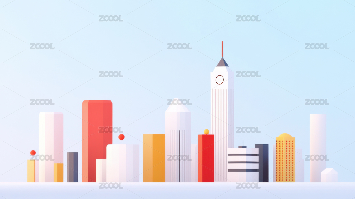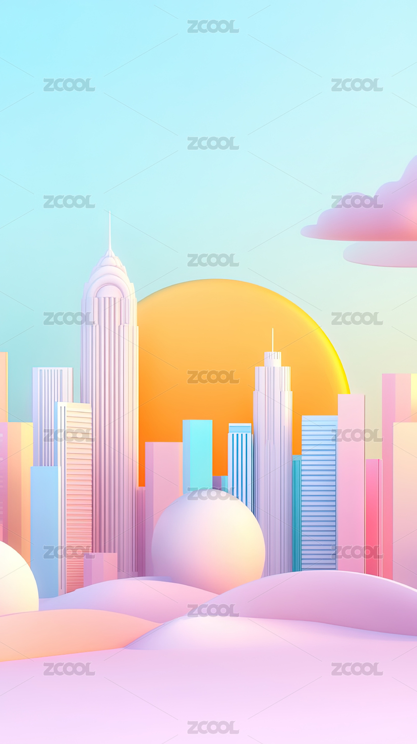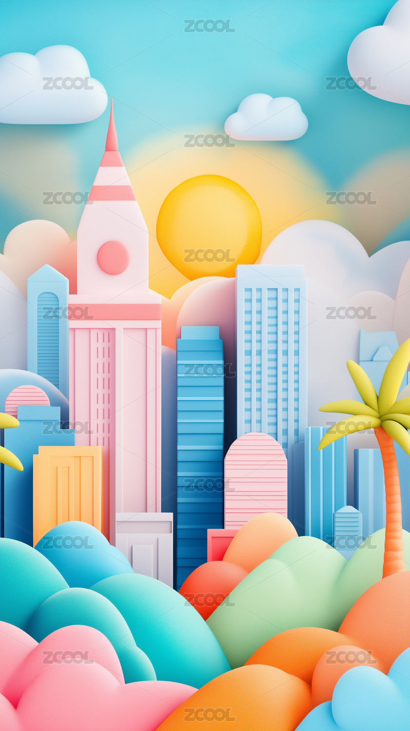 彩色3D卡通城市天际线