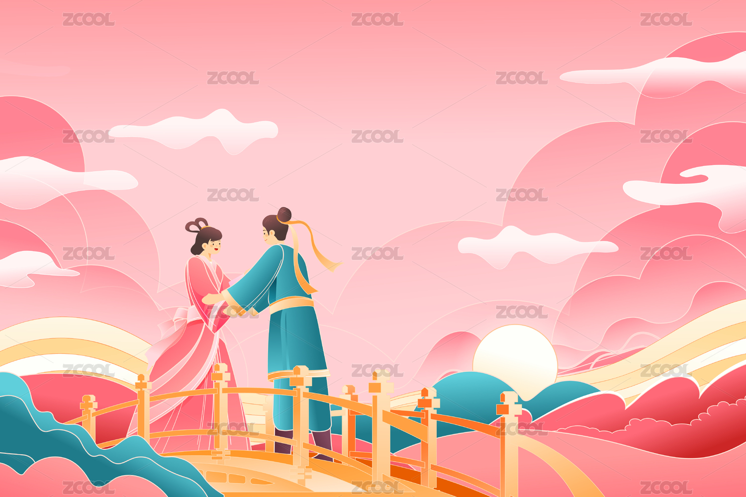 牛郎织女矢量插画