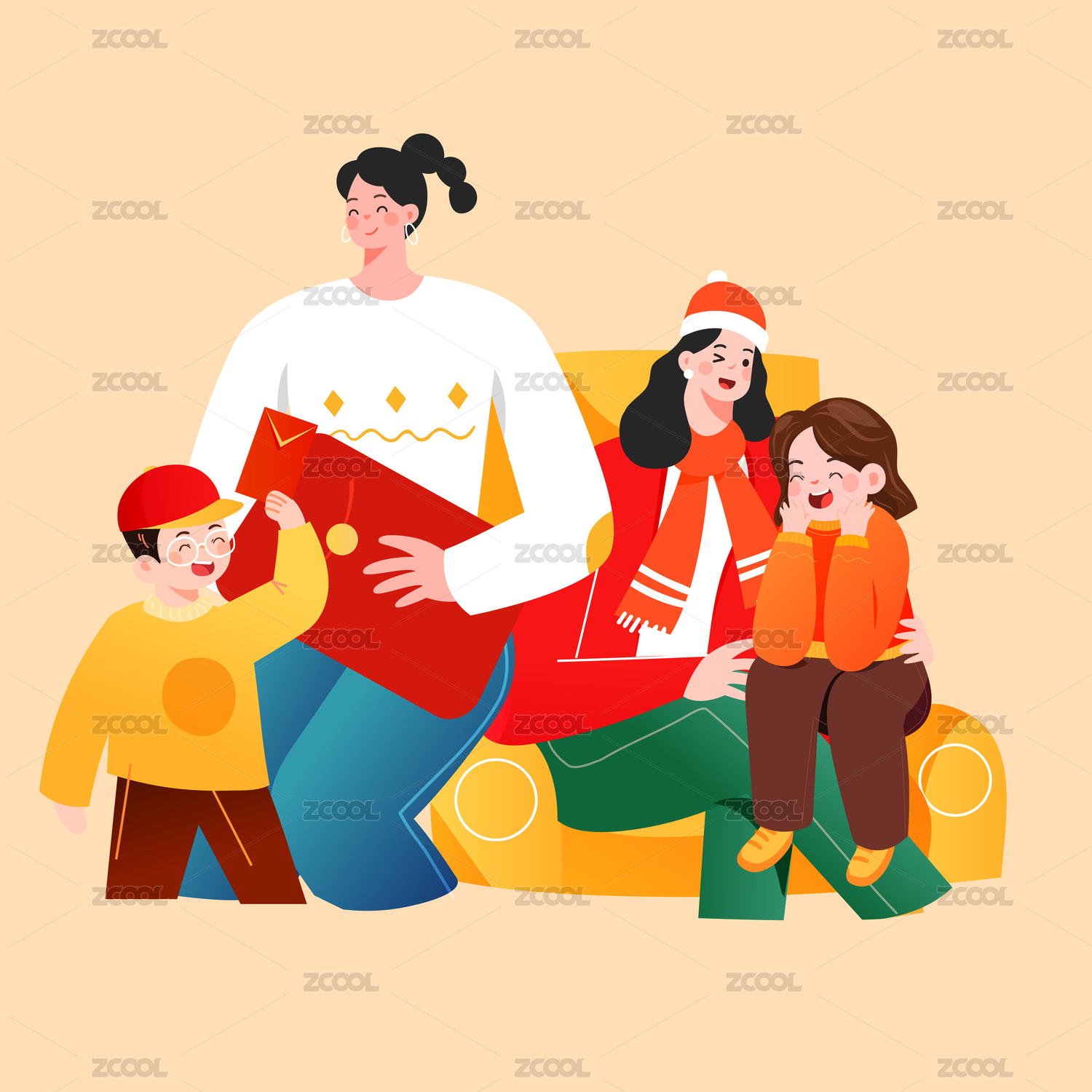 卡通,渐变,扁平,插画,插图,购物,亲子,家人,家庭,中国风
