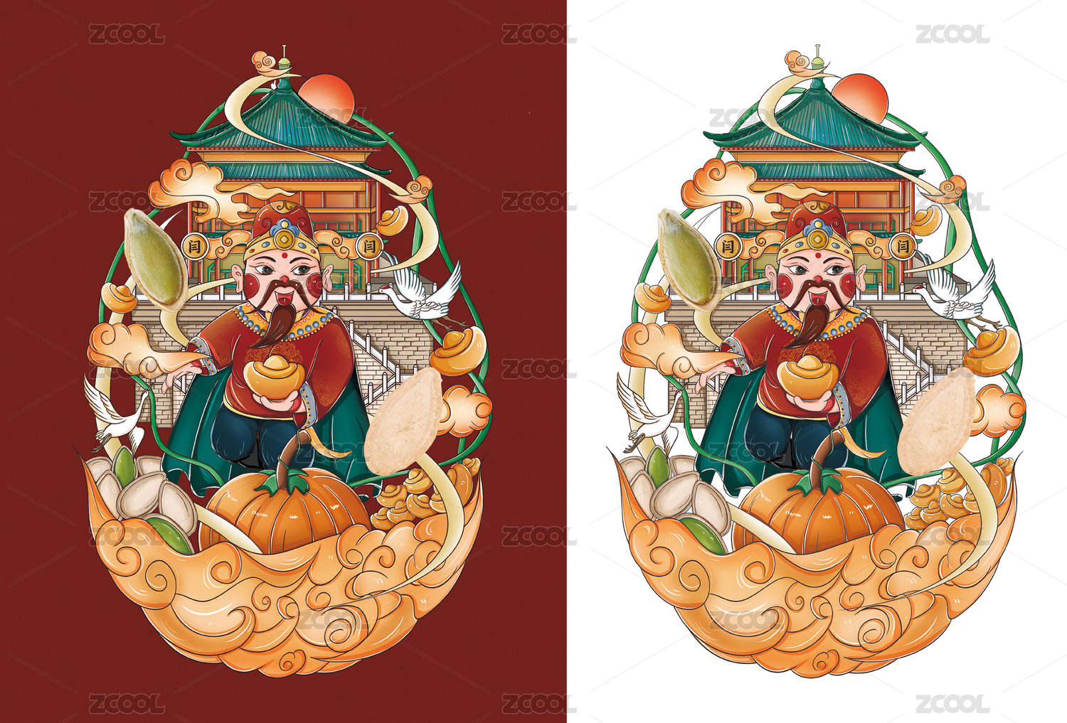 卡通财神爷插画设计