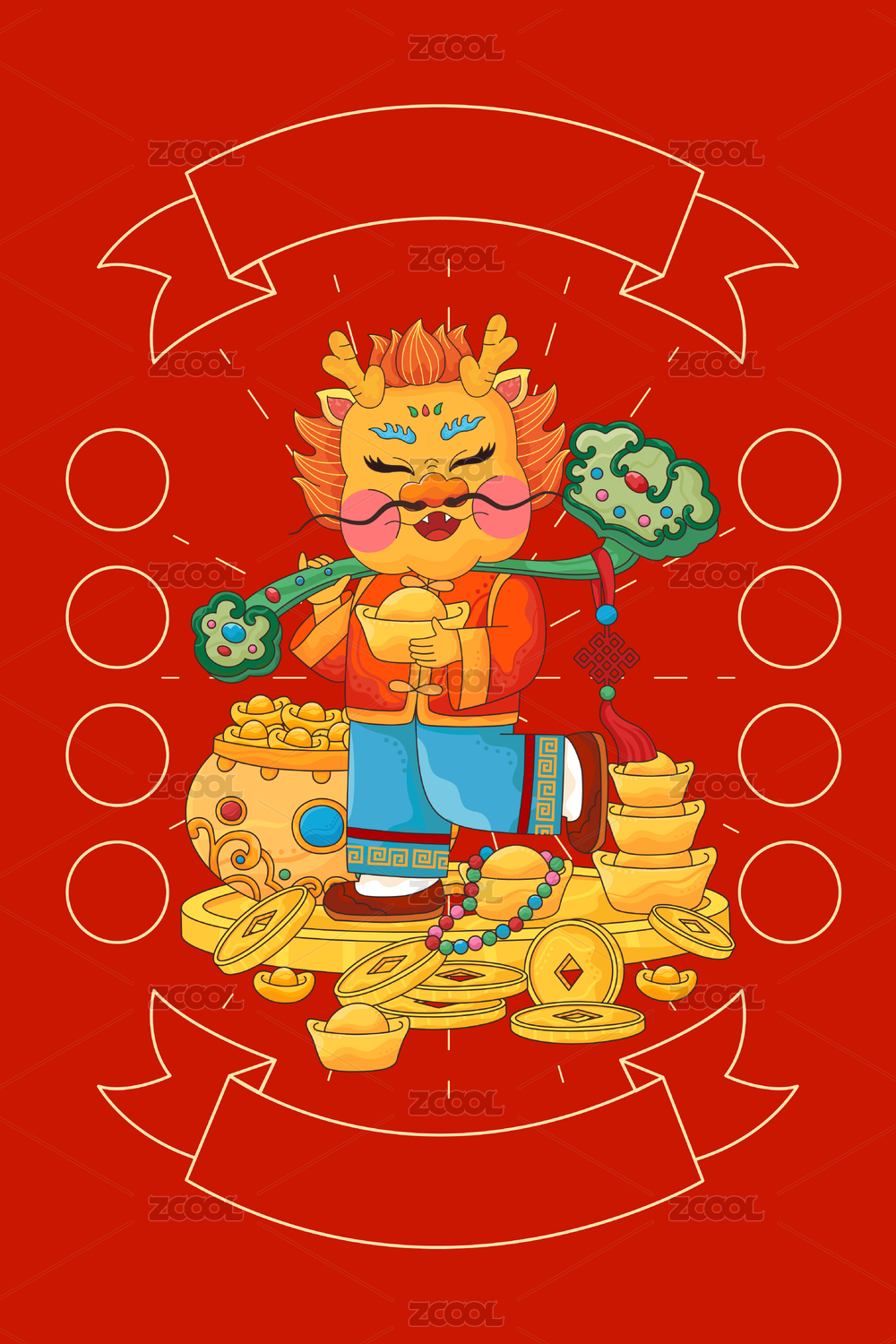 龙年春节插画模板