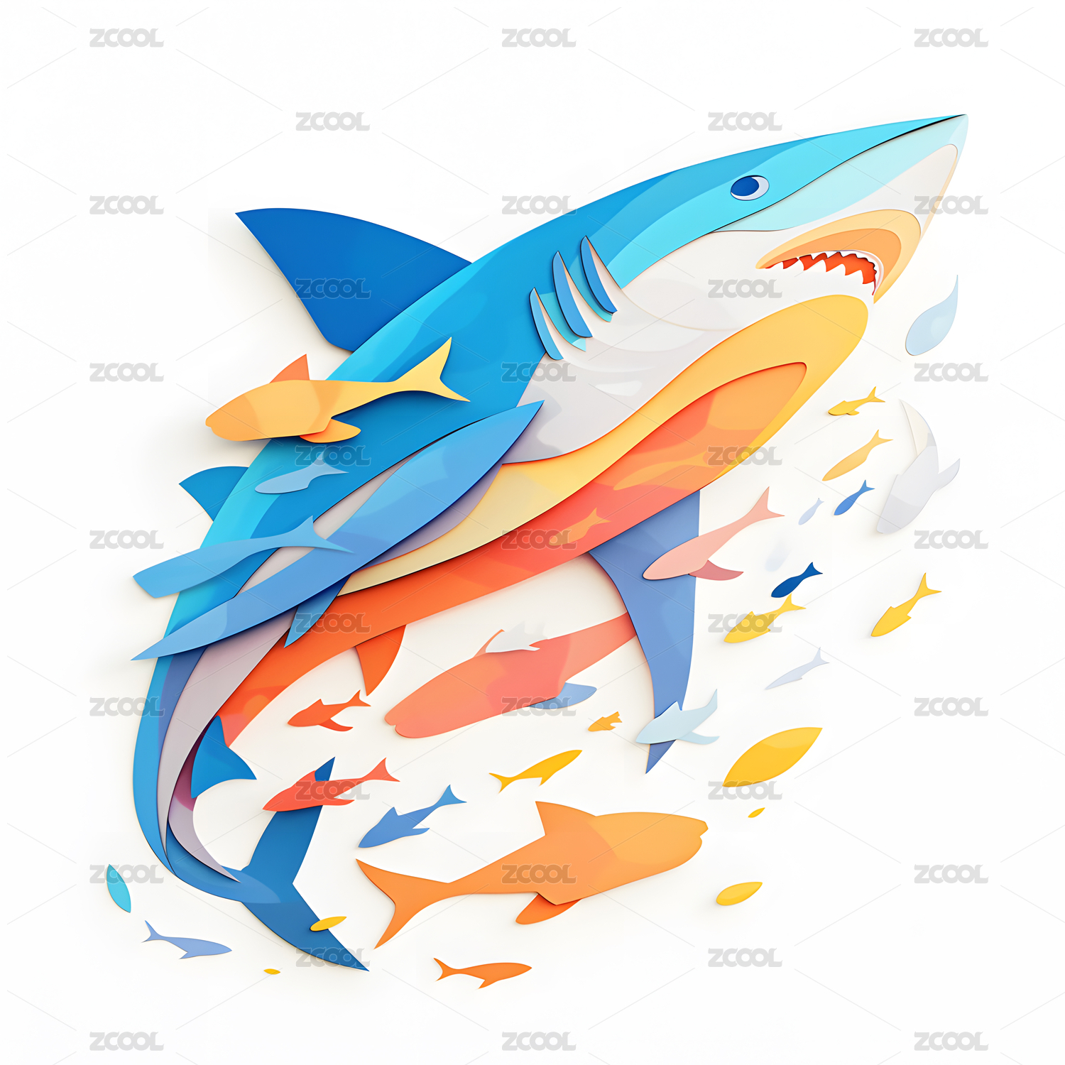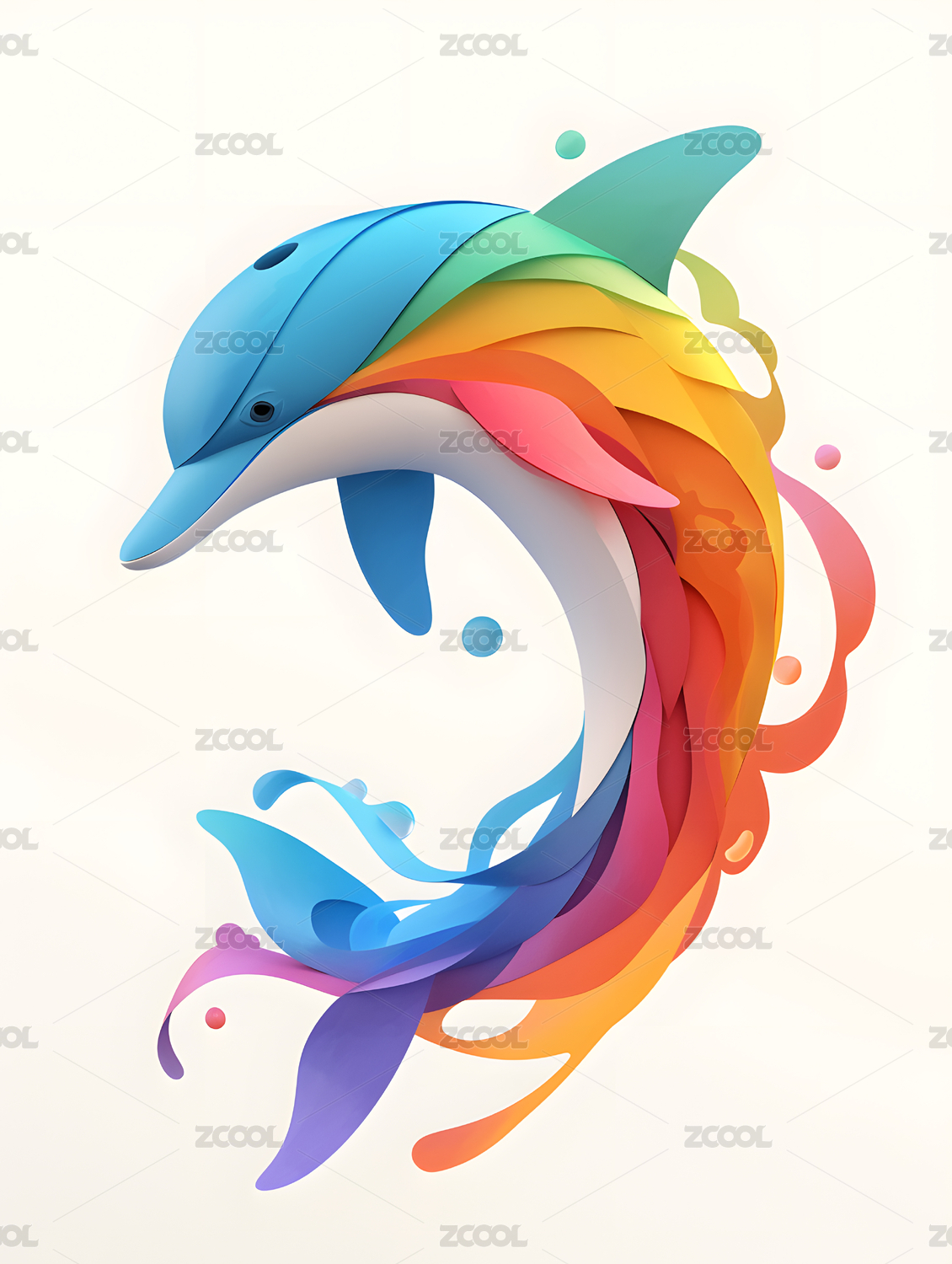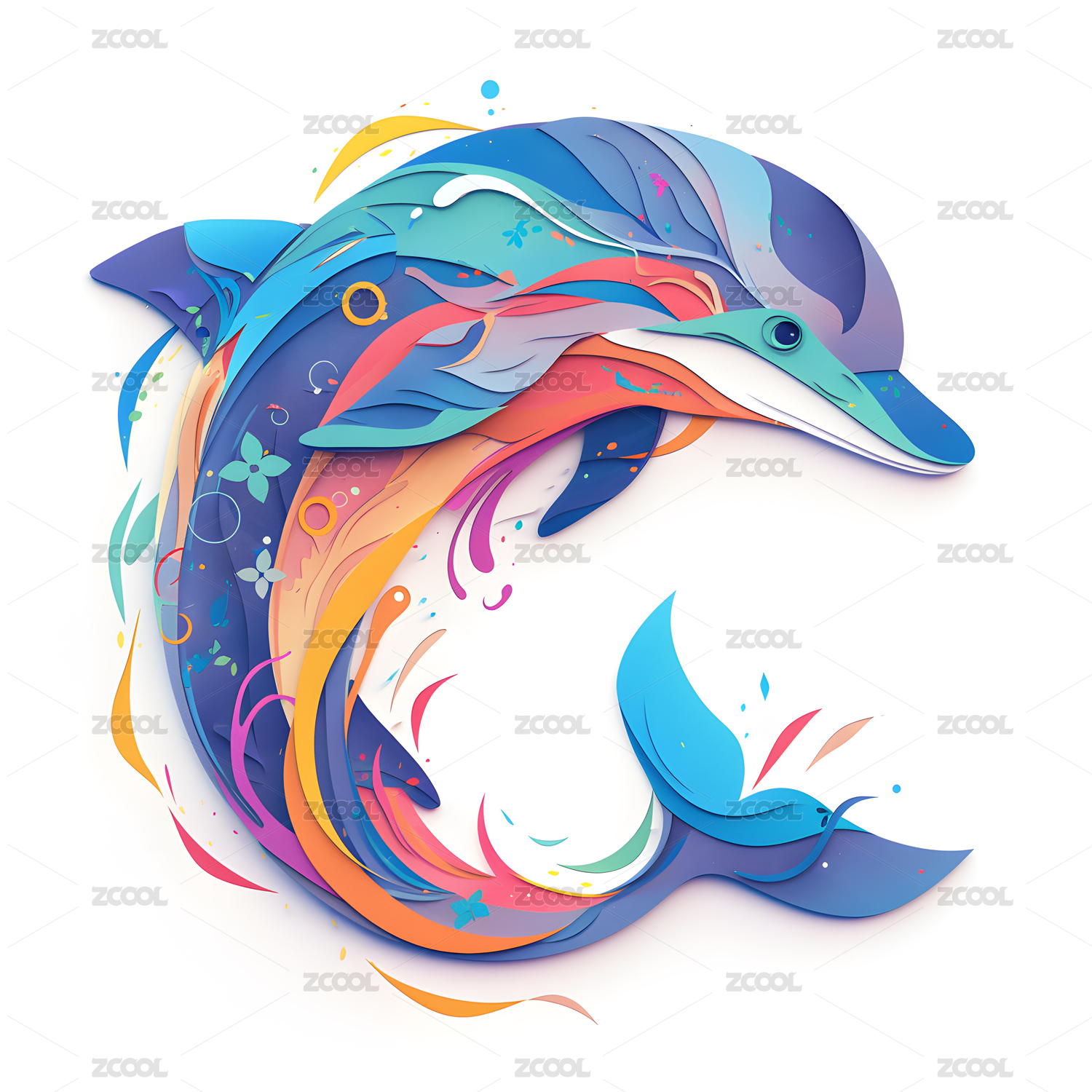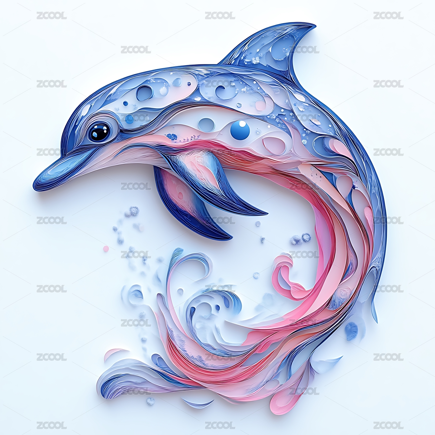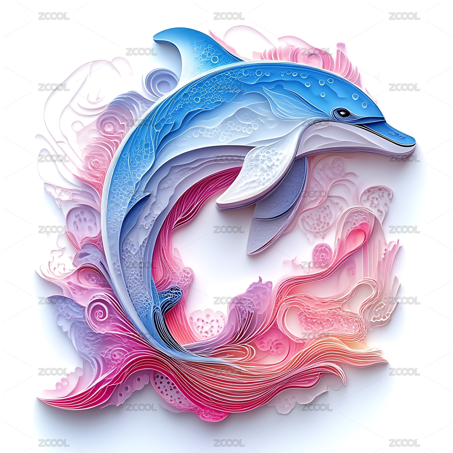 精美剪纸风立体海豚