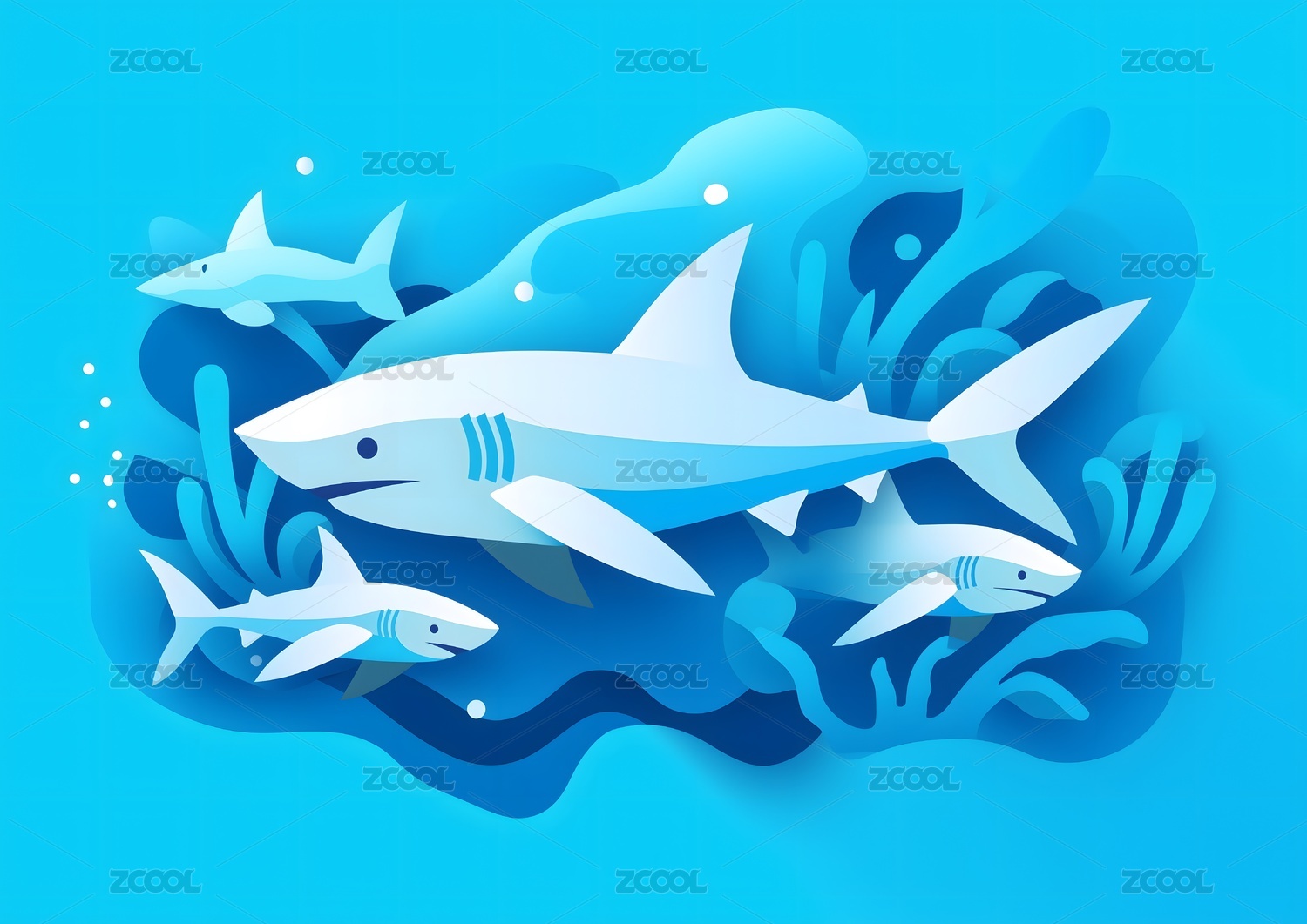 可爱的鲨鱼在水中欢快的游着