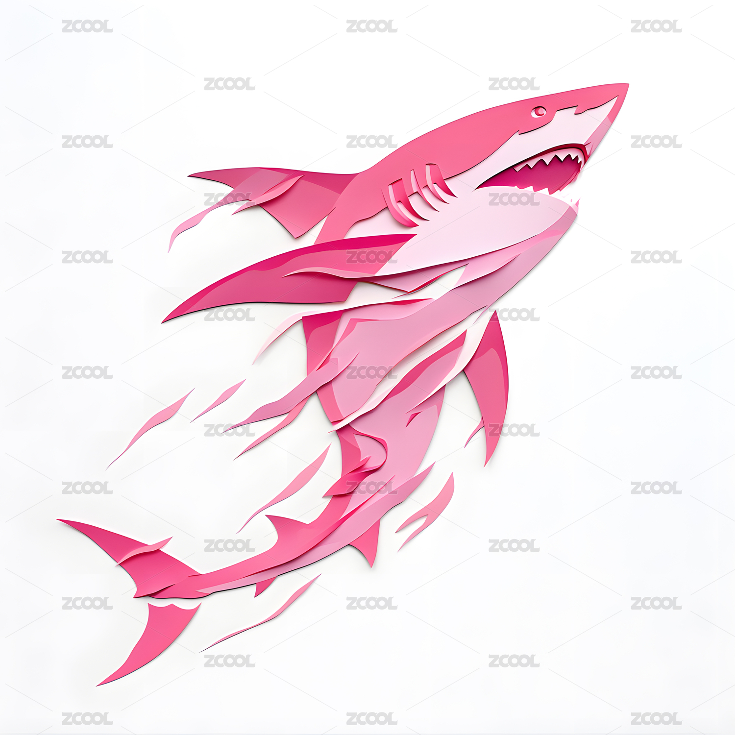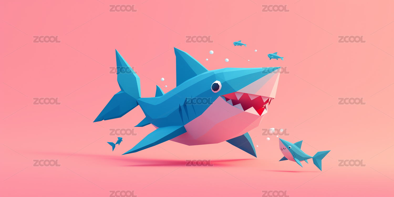 低面多边形海中的鲨鱼玩具模型3D立体插画