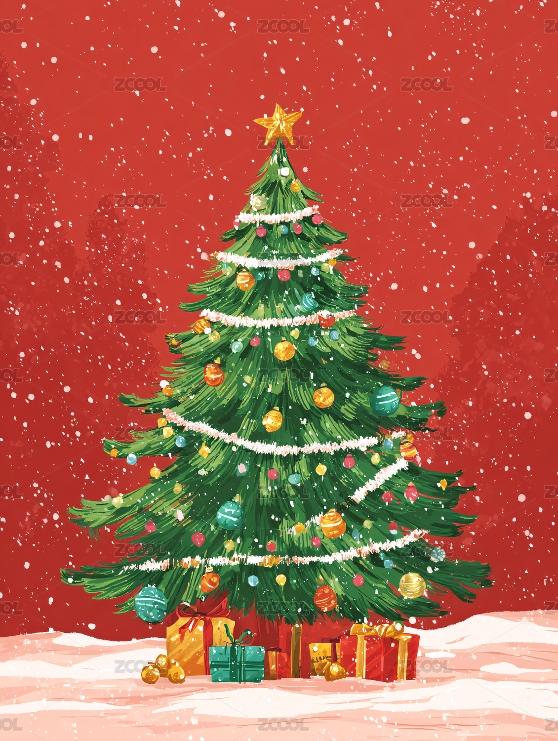 梦幻圣诞树插画
