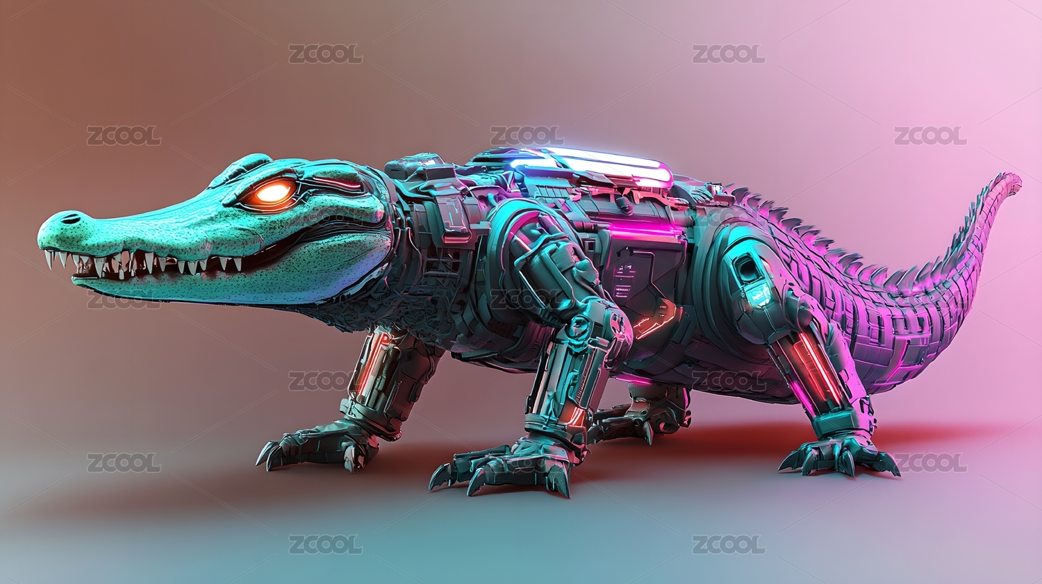 赛博朋克动物鳄鱼发光未来科技科幻虚构